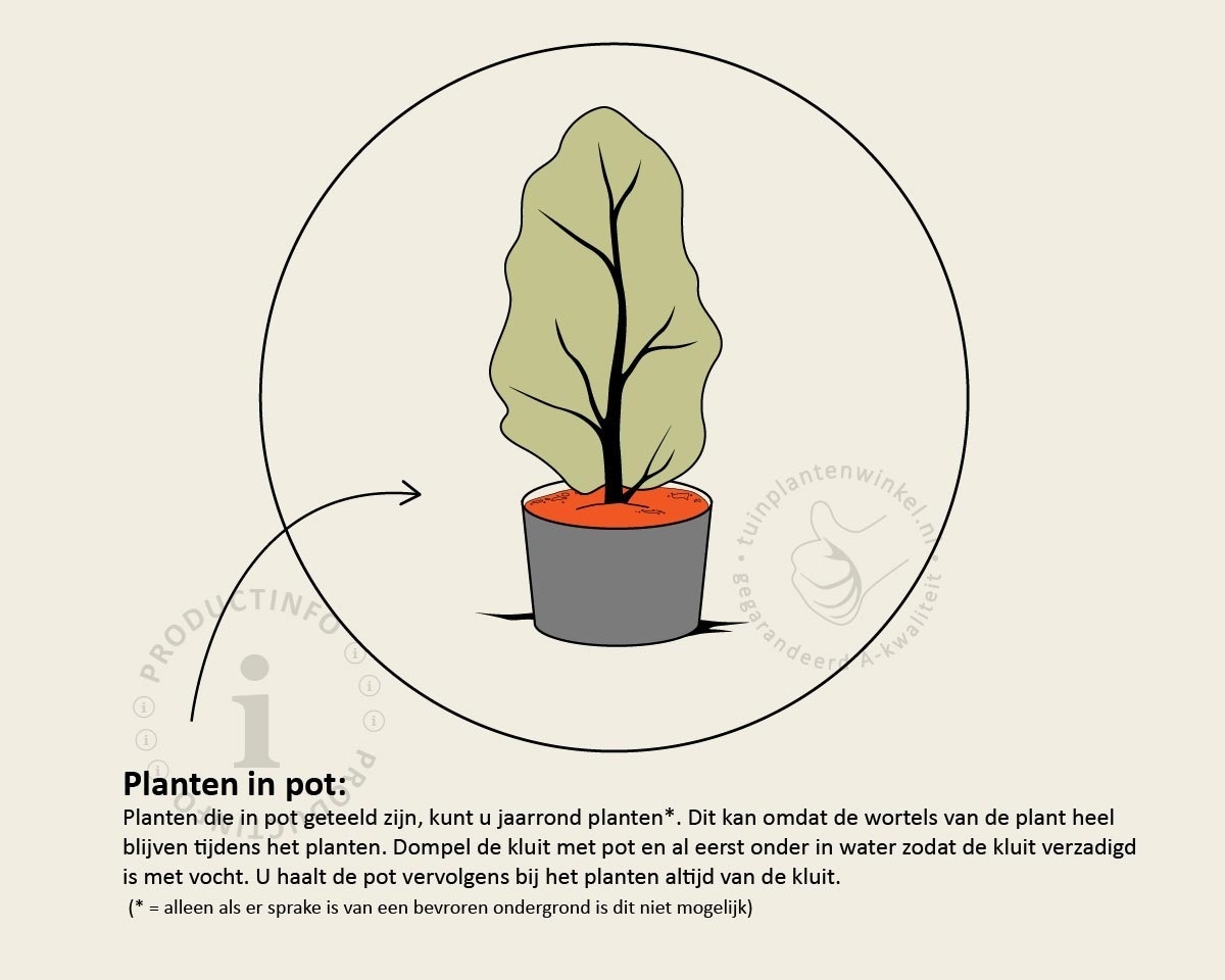 De pot is NIET meegerekend bij de hoogtemaat van de plant. Het is de daadwerkelijke hoogte van de plant!