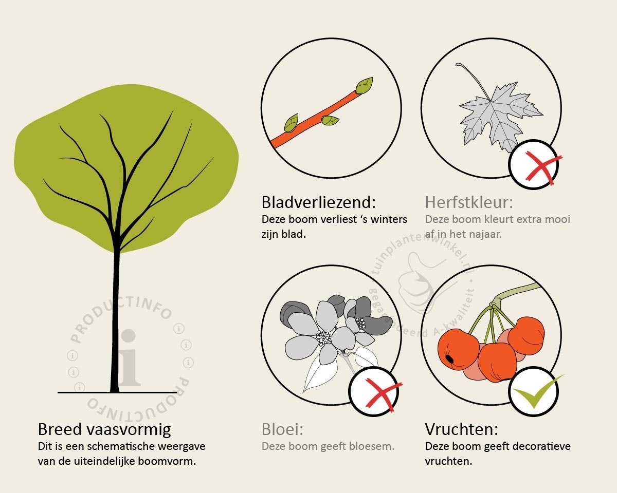 Bomen van tuinplantenwinkel.nl kunt u jaarrond planten. Dit kan omdat we al onze bomen in pot leveren. Aanplanten in de herfst, winter, lente én zomer is dus altijd mogelijk, met aangroeigarantie!