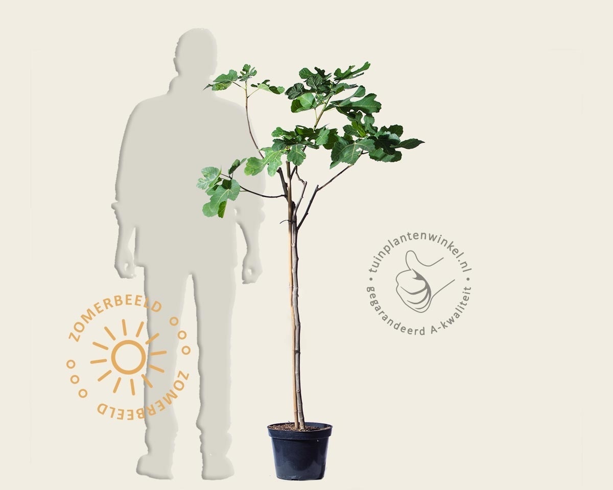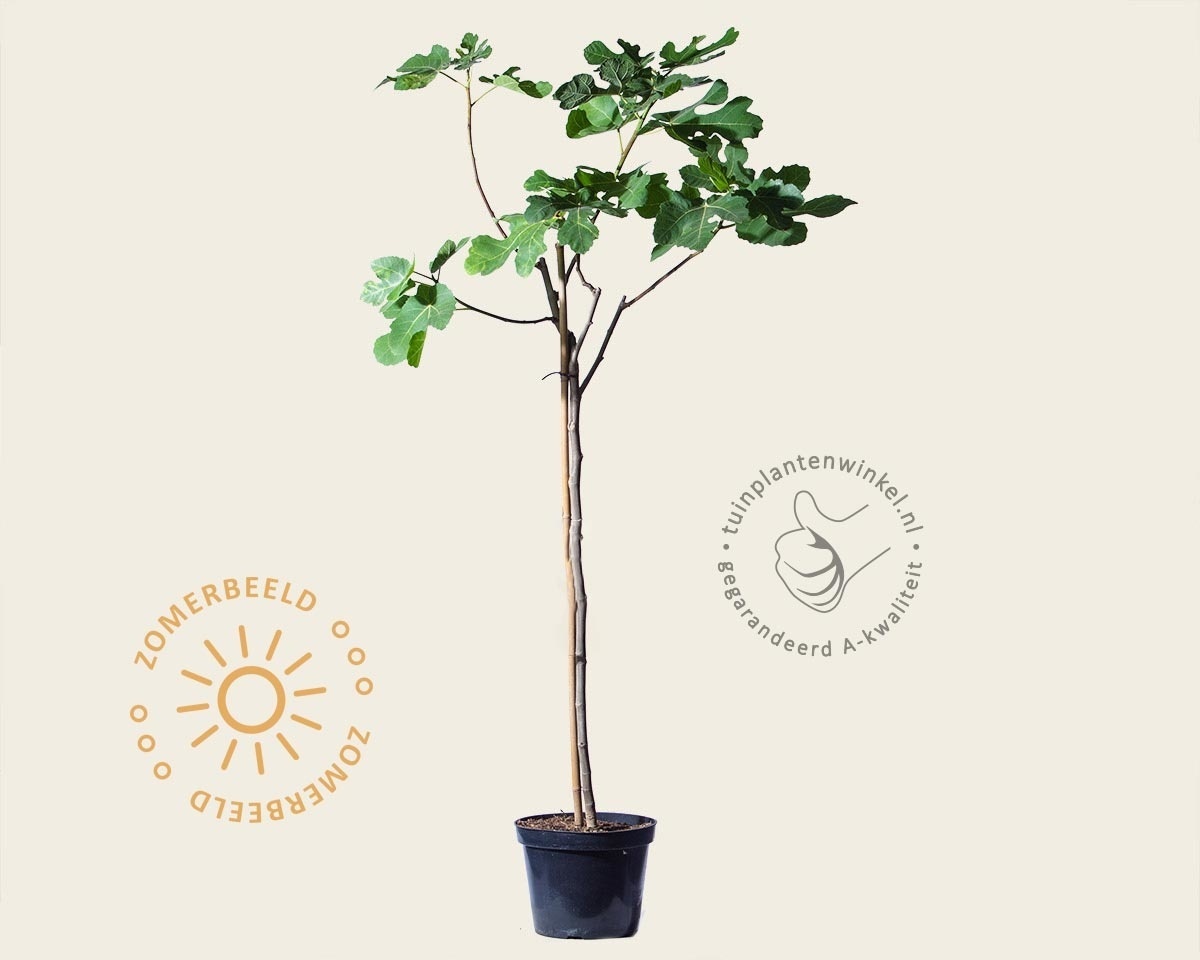 Ficus carica - halfstam staat het liefst op een beschutte plaats in de zon in een humusrijke, vochthoudende bodem. Als de Vijg is aangegroeid en op een goede plaats staat, zal hij vijgen gaan vormen, die in het najaar geoogst kunnen worden. Deze tuinpant kan als solitaire eyecatcher in de volle grond worden aangeplant; zoek wel een geschikte plaats met beschutting tegen koude, uitdrogende oostenwind. De vruchten van een vijg kunnen slecht tegen temperaturen lager dan 7° C; bescherm ze dan met een sok of doekje tot ze rijp zijn om te oogsten; rijpe vijgen kleuren donker of lichter groen afhankelijk van de variëteit en zijn dan meteen te eten.