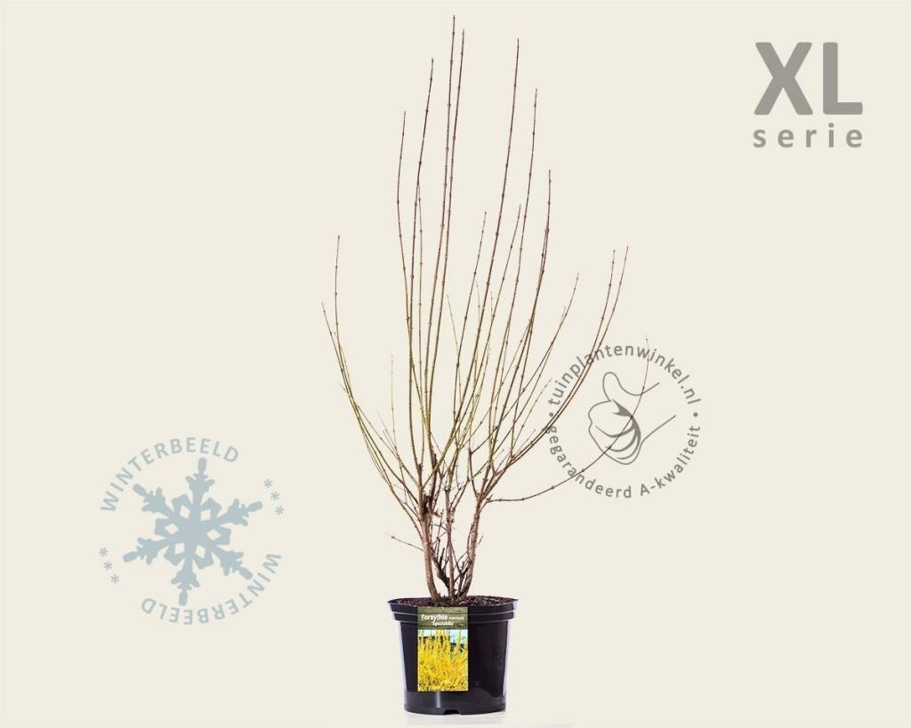 Wie kent deze tuinplant niet; de in het vroege voorjaar heldergeel, rijkbloeiende Forsythia. Het Chinees klokje staat bekend om zijn bloei aan de nog kale takken in het vroege voorjaar. De takken zijn ook geschikt om al iets eerder binnen te halen, zodat de lente nog eerder in een vaas begint. Forsythia x intermedia 'Spectabilis' XL is geschikt als haagplant of als groepsbeplanting in de wat grotere tuinen of parken. Forsythia is vernoemd naar de Engelse botanicus Forsyth.