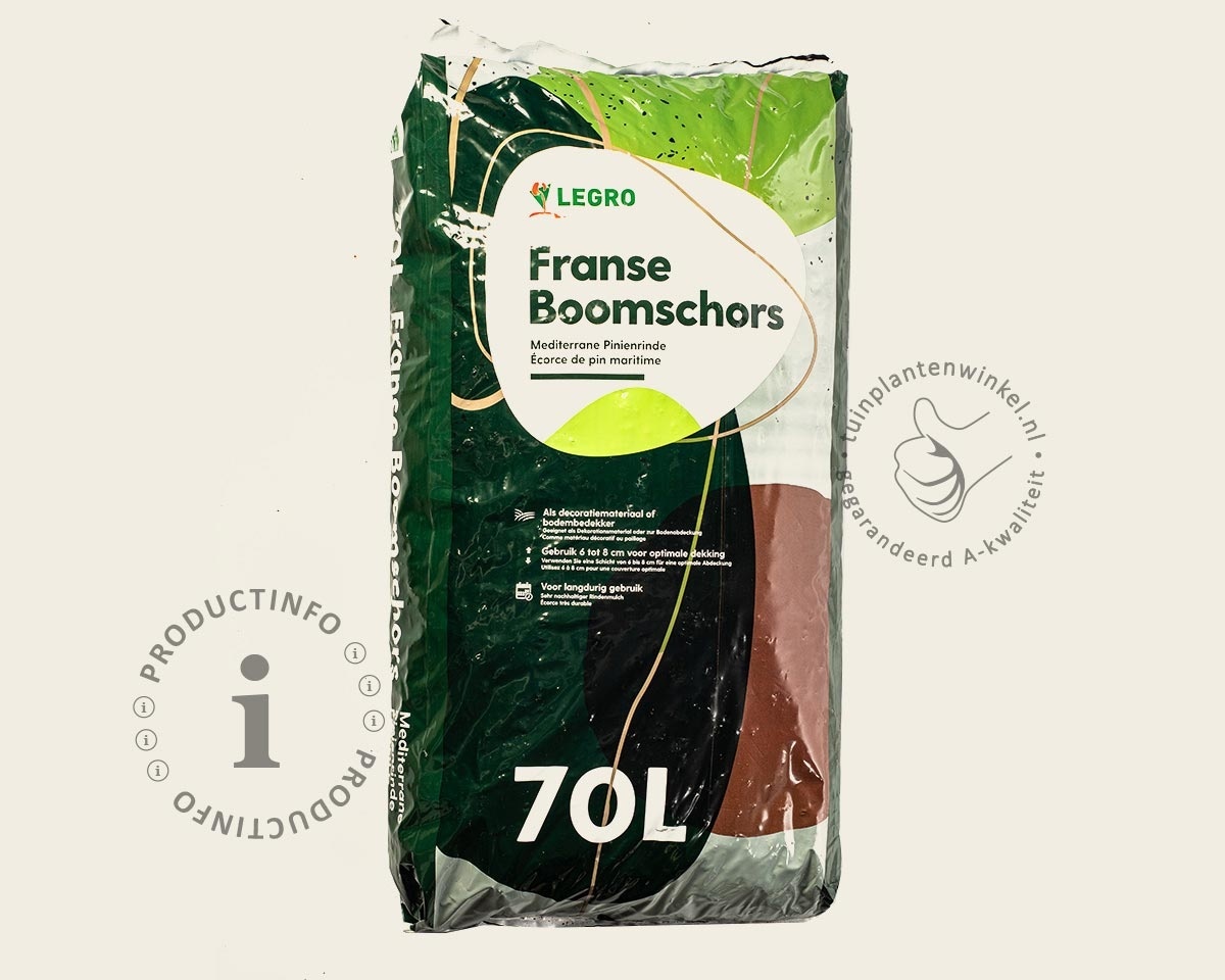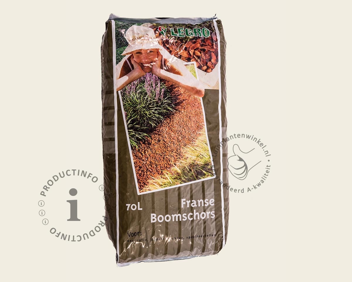 Franse boomschors is een ideaal product voor de aanleg van halfverharde paden door uw tuin. Verder is het prima geschikt voor het opvullen van ruimtes tussen de tuinplanten in uw border. Samen met antiworteldoek zorgt boomschors voor een decoratieve en natuurlijke oplossing om onkruid uit uw tuin te weren.