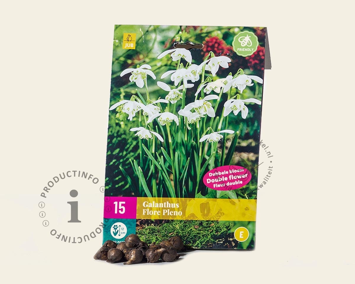 Bloembollen worden in de herfst en begin van de winter aangeplant. Let op dat u de Galanthus nivalis 'Flore Pleno' tijdig bestelt, want ze zijn maar een beperkte periode leverbaar. Plantdiepte van deze bloembol is ongeveer 5 cm onder de grond. (vanaf de onderkant van de bloembol gemeten)