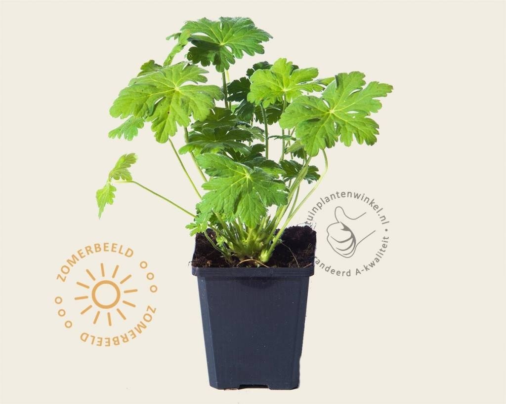 Antwoord: De Ooievaarsbek, Geranium macrorrhizum 'Czakor' stelt weinig eisen aan de grond en kan in de zon, halfschaduw en schaduw staan. In de zon en halfschaduw zal de Geranium macrorrhizum 'Czakor' in de maanden mei juni donkerroze bloemen geven die veel insecten zoals vlinders en bijen aan trekken. De Ooievaarsbek, Geranium macrorrhizum 'Czakor' is een bodembedekker die zelfs over en tussen boomwortels doorgroeit. De Ooievaarsbek, Geranium macrorrhizum 'Czakor' is goed winterhard en kan goed droogte verdragen, maar water bij geven bij echt extreme warmte is natuurlijk wel nodig. De geleverde potmaat is een 9 cm pot.