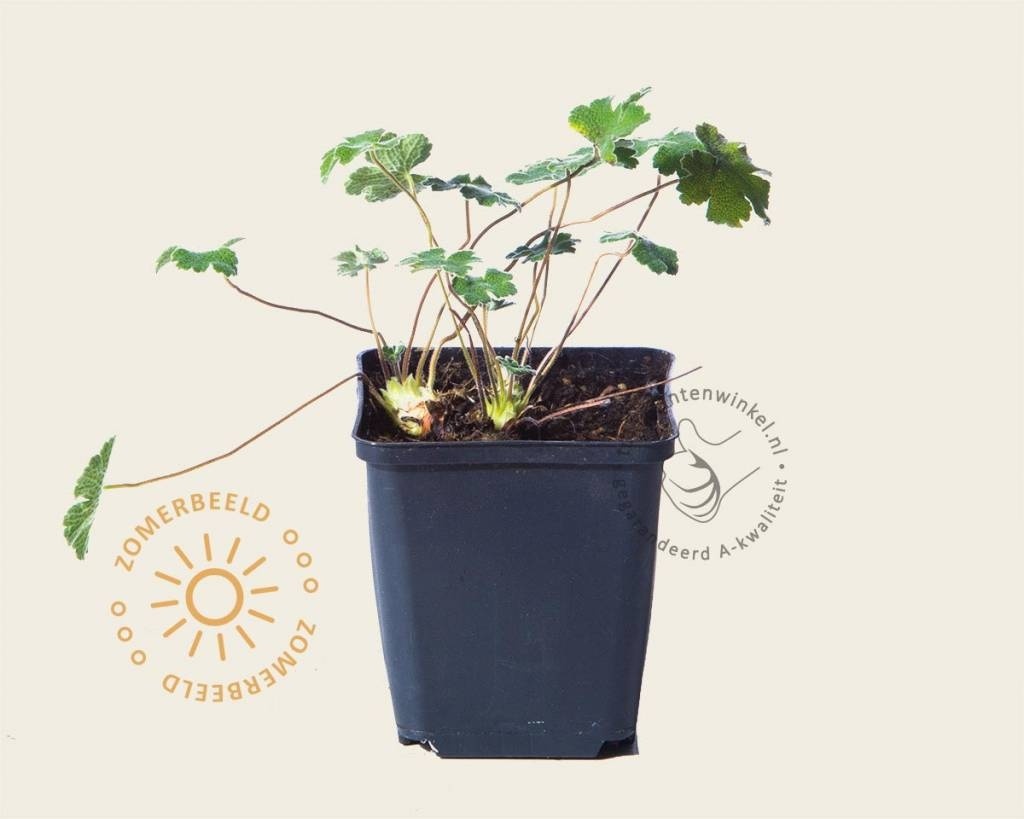 Het opvallendste kenmerk van Geranium renardii is het zacht behaarde blad. Het blad is gewoon groen van kleur, maar krijgt vanwege de zachte beharing een grijs/groene uitstraling. De bloemen van deze Ooievaarsbek zijn met paarse aderen, wit. Bladkleur steekt daar dus mooi vanaf. De bloemen steken her en der boven de bladeren uit. Geranium renardii geeft een groene basis aan de border en is mooi in combinatie met andere producten / struiken of zomerbloeiende vaste planten. Deze tuinplant is vorstbestendig, maar verliest in de winter zijn bladeren.