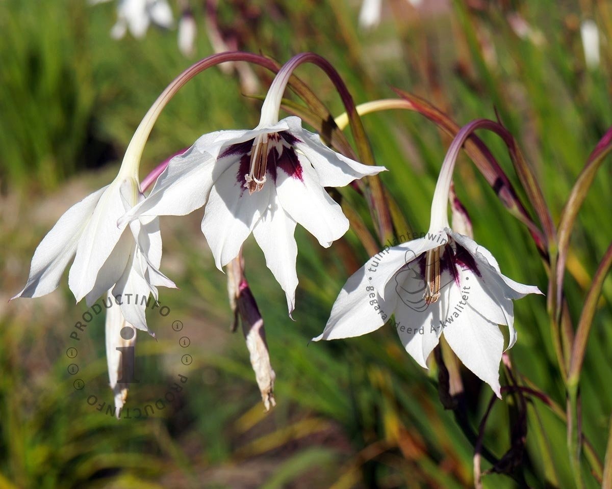 De Gladiolus callianthus murielae, ook bekend als de Abyssinische gladiool, is een sierlijke en elegante plant die een exotische flair aan elke tuin toevoegt. Deze charmante bloeier is beroemd om zijn opvallende witte bloemen met een diep paars hart, die een verfijnde en delicate schoonheid uitstralen. Met een gemiddelde hoogte van ongeveer 60-90 cm, is de Gladiolus callianthus murielae perfect voor borders, perken, en als snijbloem in boeketten.