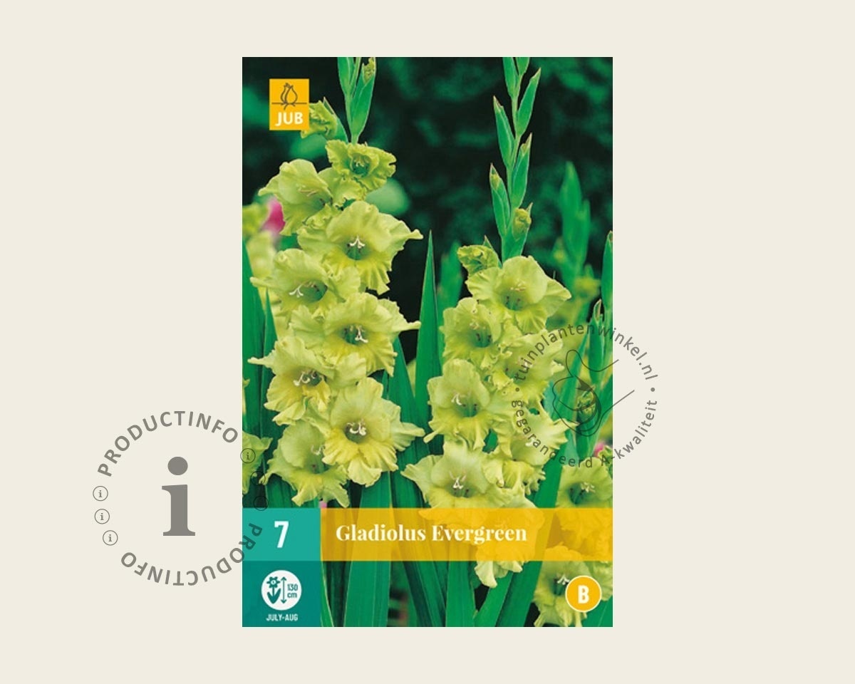 De Gladiolus 'Evergreen' is een opvallende en elegante bloem die een unieke charme toevoegt aan elke tuin of bloemarrangement. Deze variëteit van de gladiool staat bekend om zijn opvallende, heldergroene bloemen, die een fris en levendig uiterlijk geven. Met een hoogte die kan variëren van 60 tot 120 centimeter, is de Gladiolus 'Evergreen' zowel indrukwekkend in perken als in snijbloemarrangementen.
