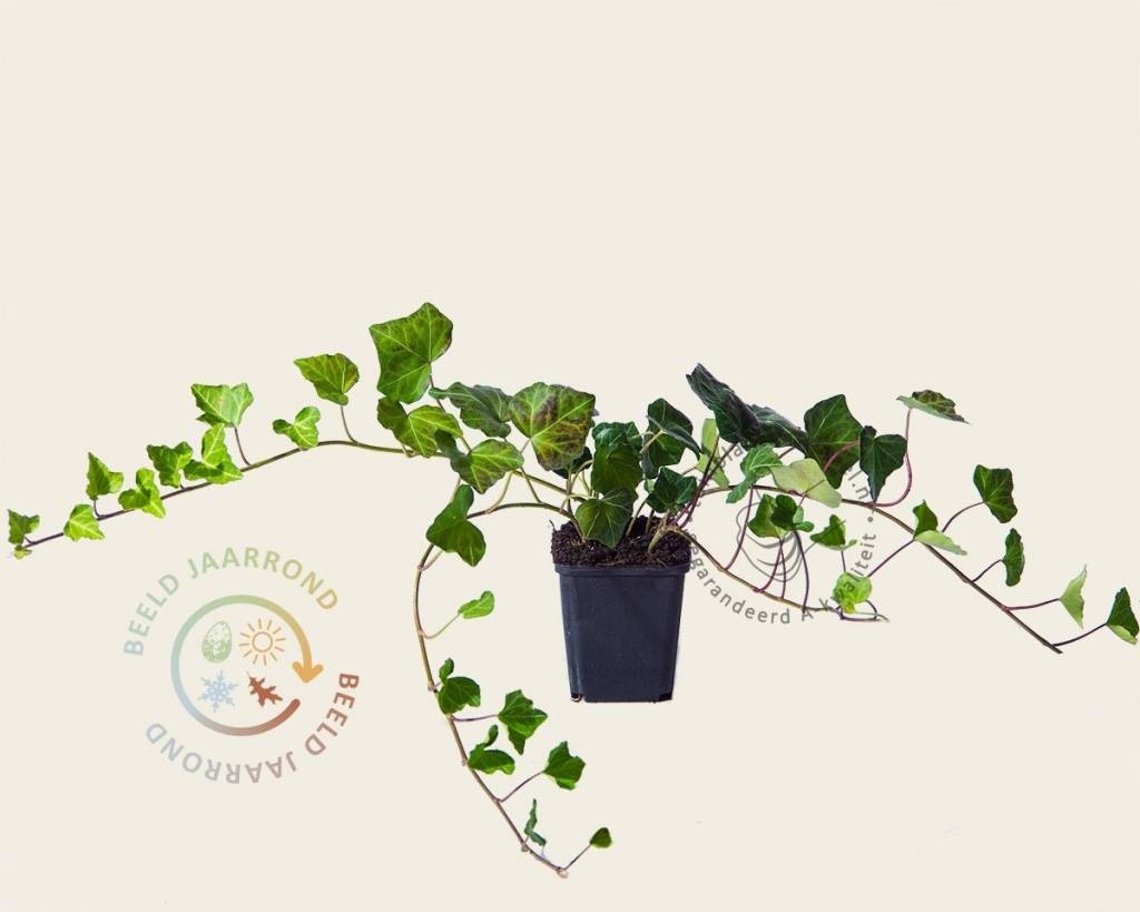Hedera hibernica is een snelgroeiende en zelfhechtende, groenblijvende klimplant. Ideaal om als smalle haagplant te gebruiken in een kleinere tuin; help de Klimop met klimmen door hem door een mazennetwerk te vlechten. De bladeren zijn donkergroen met lichte nerven en driehoekig gelobt. bodembedekkende tuinplant wordt hij gebruikt voor grotere plantvakken bijvoorbeeld in openbare ruimtes (oa.parken).