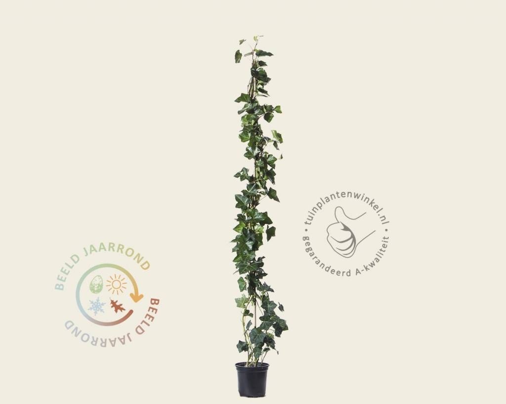 De Hedera hibernica is een snelgroeiende en zelfhechtende, groenblijvende klimplant. Ideaal om als smalle haagplant te gebruiken in een kleinere tuin. Help de Klimop met klimmen door hem door het mazennetwerk te vlechten. Als bodembedekkende tuinplant wordt hij gebruikt voor grotere plantvakken bijvoorbeeld in openbare ruimtes (o.a.parken). Deze plant zonder stok leent zich prima om direct als bodembedekker aangeplant te worden. Daarnaast is het een budget-alternatief voor klimop-planten die met stok geleverd worden.