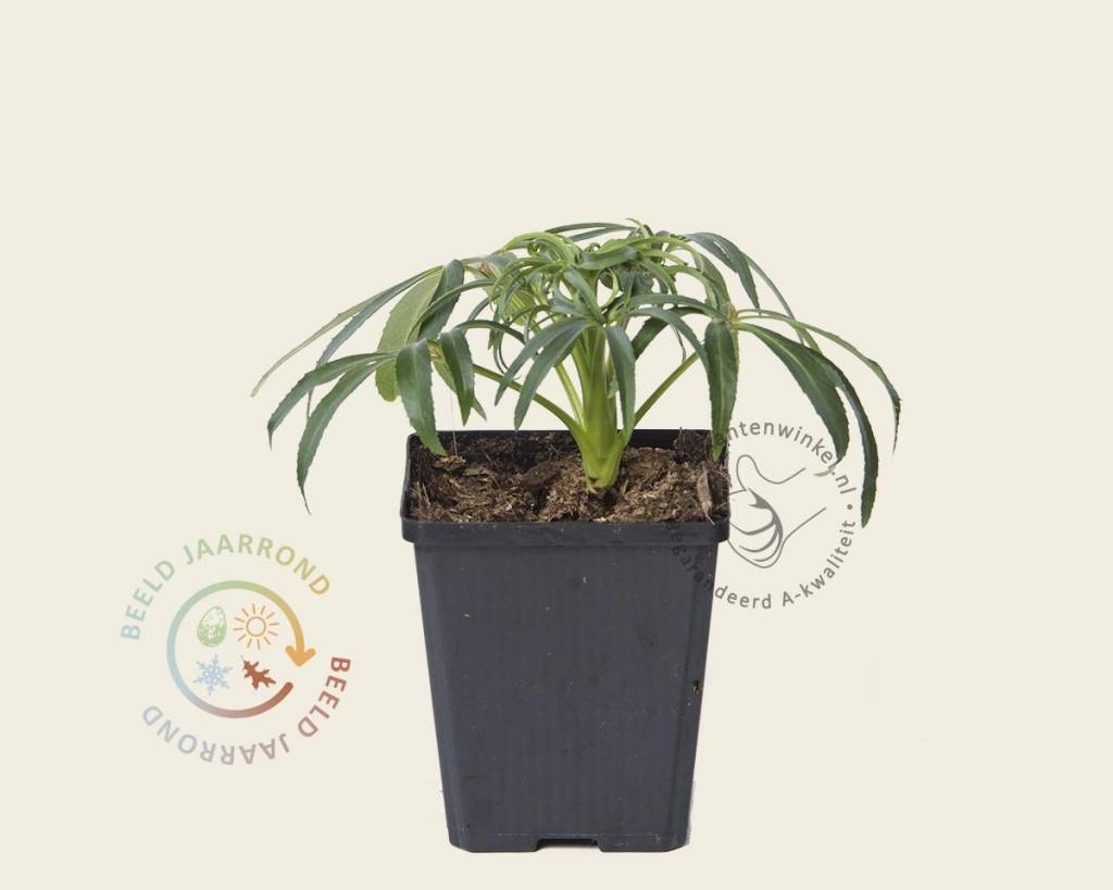Antwoord: De Helleborus foetidus wordt ook wel stinkend nieskruid genoemd. De bloemen hebben een onaangename geur. Let op als u de zaden oogst, dit kan jeuk veroorzaken. De beste standplaats voor de Helleborus foetidus is halfschaduw tot schaduw. Het beste doet deze vaste plant het op losse humeuze grond. Helleborus foetidus kan gerust met andere vaste planten onder bomen geplant worden.