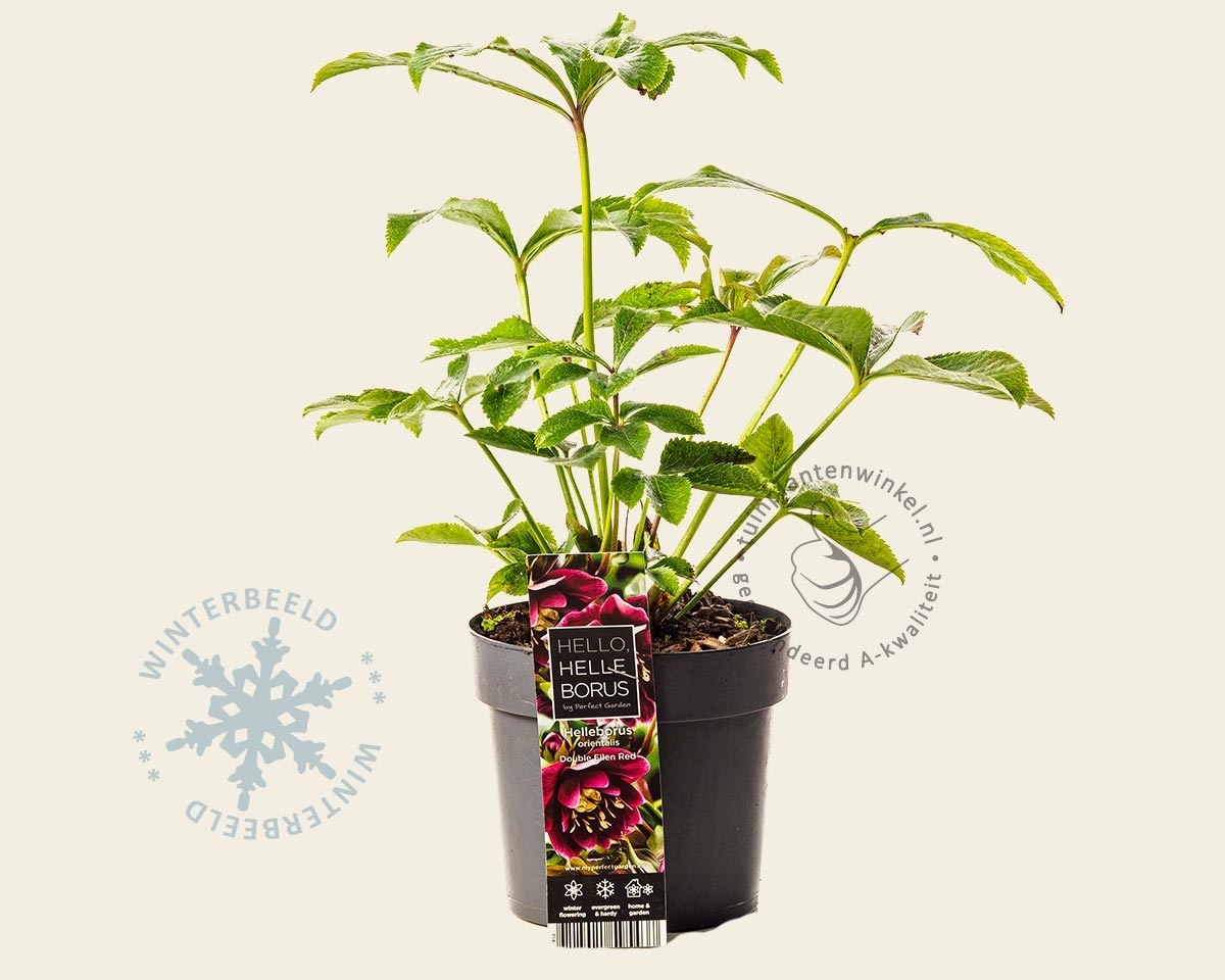 Helleborus orientalis 'Double Ellen Red' heeft een gevulde bloem met een purperrode kleur. Het blijft bijzonder om de bloemen te zien verschijnen tijdens de wintermaanden. De Oosterse kerstroos bloeit doorgaans van januari tot maart. De bloemen kleuren vaak bij het uitbloeien naar een groene tint en blijven er dan ook nog steeds aantrekkelijk om te zien.
