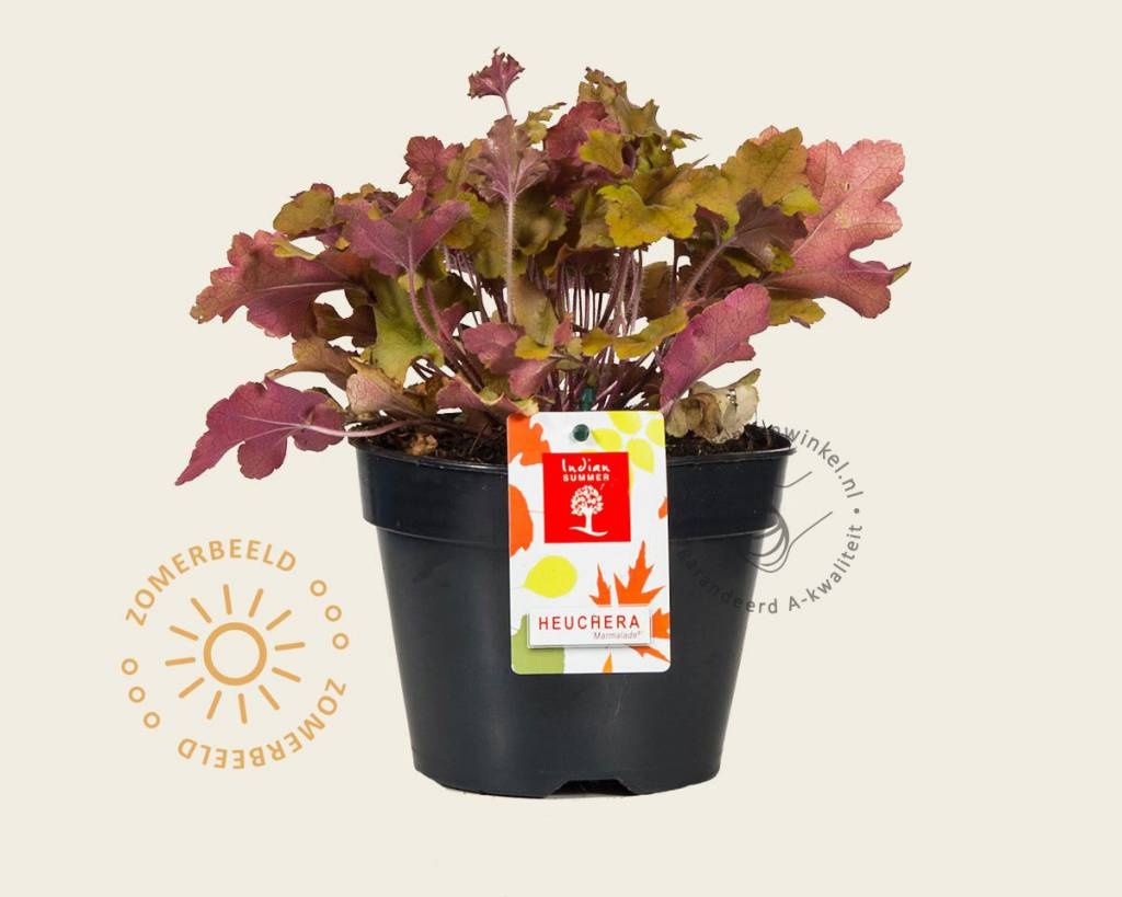 De planten uit de Heuchera Indian Summer collectie hebben prachtige bladkleuren die het hele jaar zorgen voor een nazomergevoel vol contrasterende kleuren. Met de uiteenlopende stijlen van de Heuchera Indian Summer kun je buiten alle kanten op.