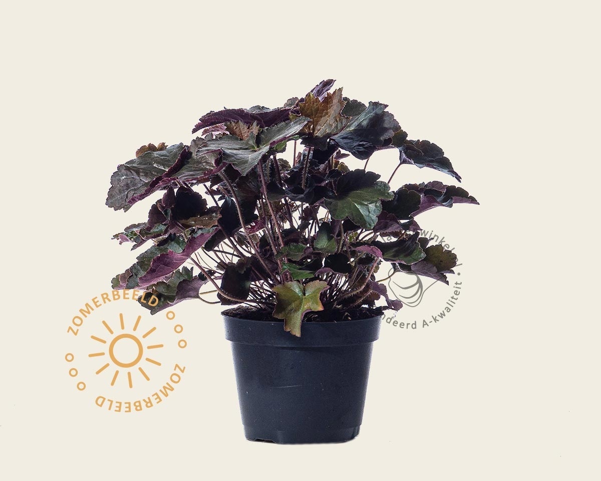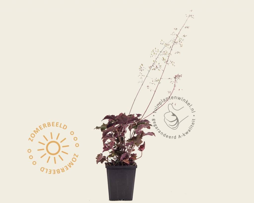 Heuchera micrantha 'Palace Purple' is een sterke, halfgroen blijvende mooie plant met opvallende rood/bruine bladeren, die in zachte winters aan de tuinplant blijven. De stelen van het blad groeien rechtstreeks uit de wortel van de vaste plant. Deze Heuchera micantha bloeit met kleine, witte bloemen, die met een groeivorm als een wolk afsteken tegen het donkere blad. Micrantha Palace Purple purperklokje is prima geschikt als bodembedekker. Oorspronkelijk komt Heuchera micrantha uit Noord-Amerika. Heuchera is genoemd naar professor Johan Heinrich von Heucher (1677-1747).