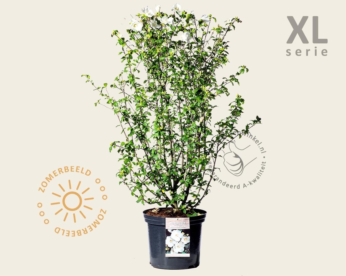 De Hibiscus syriacus ‘W. R. Smith’ heeft lange opgaande takken en kan uiteindelijk een hoogte bereiken van 150 cm. Samen met de uitbundige bloei van juli tot september met veel witte bloemen, die uitgroeien tot eivormige doosvruchten, zorgt deze tuinplant voor een vrolijke zomerse sfeer. De Altheastruik is vorstbestendig en verliest in de winter zijn bladeren.