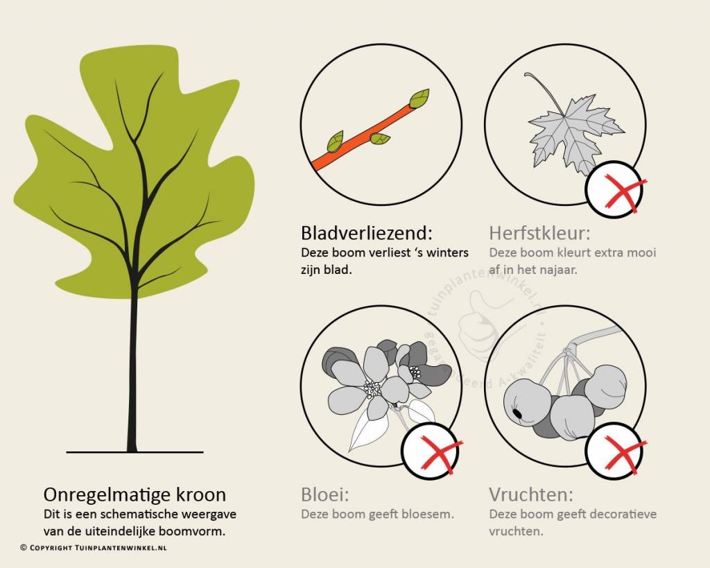 Bomen van tuinplantenwinkel.nl kunt u jaarrond planten. Dit kan omdat we al onze bomen in pot leveren. Aanplanten in de herfst, winter, lente én zomer is dus altijd mogelijk, met aangroeigarantie!