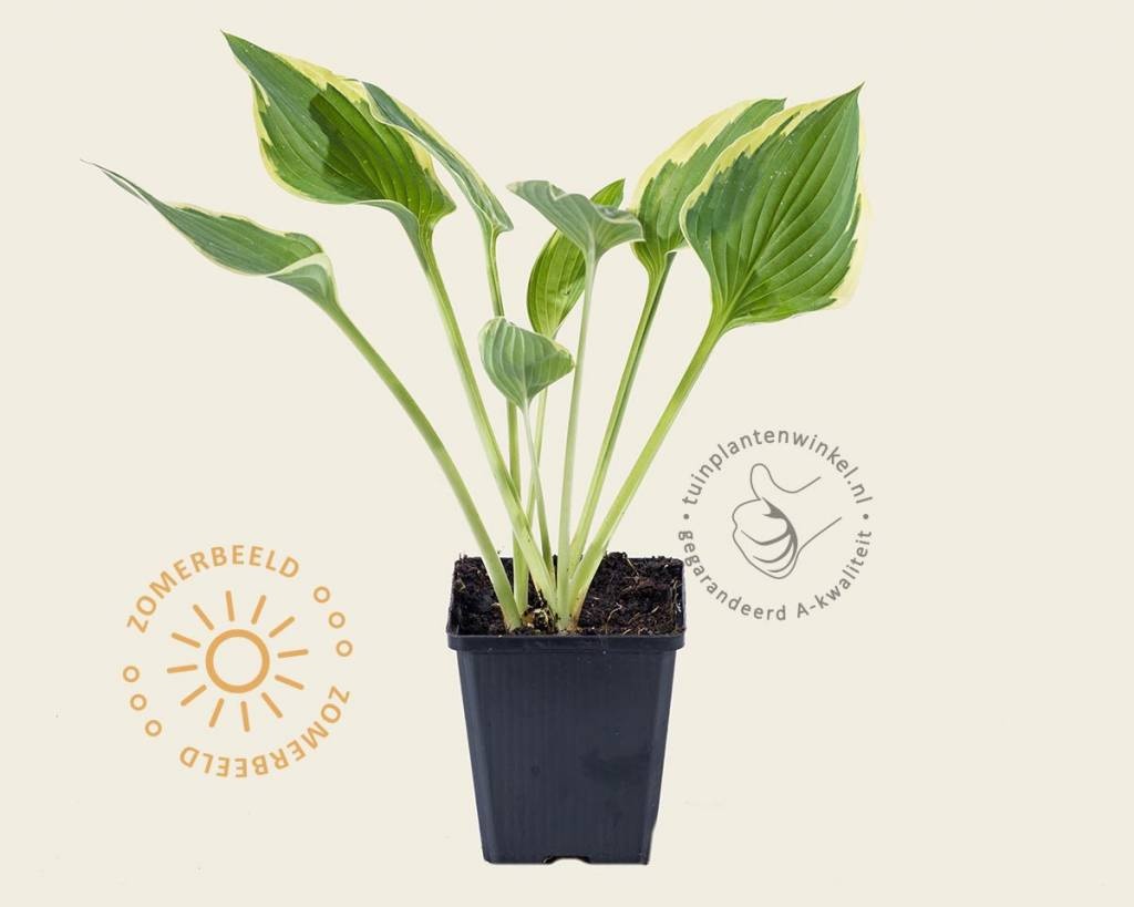 Hosta fortunei 'Aureomarginata' is een vaste tuinplant met prachtig, decoratief blad; hij groeit het beste in een schaduwrijke omgeving. De Hartlelie heeft grote, donkergroene bladeren met een gele rand. Tijdens de bloei steken lange bloemstengels met mooie, paarse bloemen boven de tuinplant uit. Hosta fortunei 'Aureomarginata' staat mooi in de border in combinatie met andere vaste planten en staat ook prachtig in een bloembak. De van oorsprong Japanse tuinplant is ook geschikt voor de rotstuin en de oosterse tuin. De bladeren zijn mooi te gebruiken in boeketten.