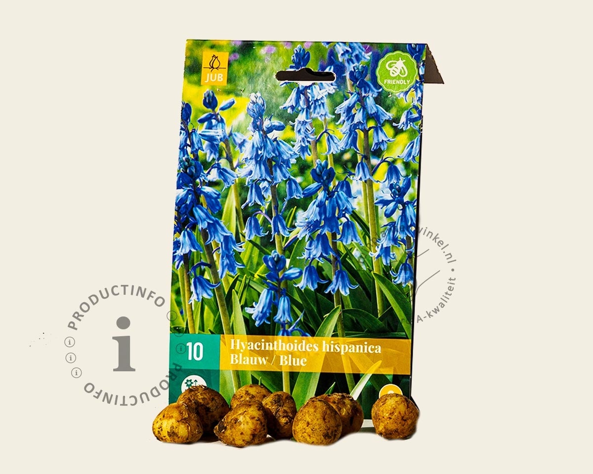 Bloembollen worden in de herfst en begin van de winter aangeplant. Let op dat u de Hyacinthoides hispanica Blue tijdig bestelt, want ze zijn maar een beperkte periode leverbaar. Plantdiepte van deze bloembol is ongeveer 10 cm onder de grond. (vanaf de onderkant van de bloembol gemeten). Zorg ervoor dat de grond tijdens warme en droge periodes niet uitdroogt. Dit is vooral belangrijk als de bloembollen onder bomen zijn aangeplant.