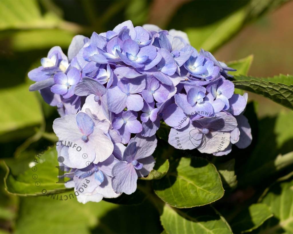 Hydrangea macrophylla 'Bodensee' is een Boerenhortensia met bolvormige bloeiwijze (Mophead) en krijgt van juni tot september blauwe bloemen. Door het grote bladoppervlak(macrophylla) vraagt de Hydrangea macrophylla 'Bodensee' redelijk veel water. De tuinplant is winterhard, kan goed tegen zeewind en verliest in de winter zijn bladeren.