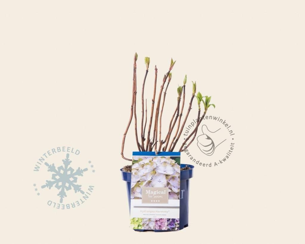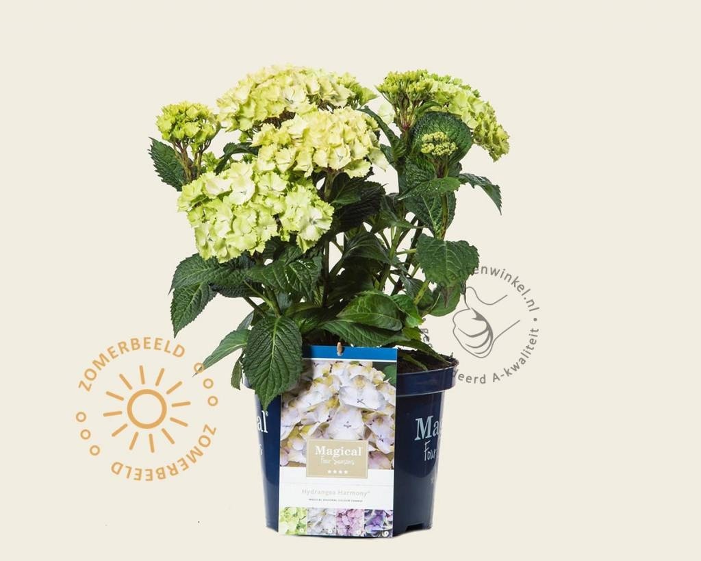 Hydrangea macrophylla 'Magical Harmony' is een Boerenhortensia die onder de magical-typen valt. Bloemen van Magical Hortensia's hebben de eigenschap extra mooi van kleur te veranderen: ze verkleuren van bijna wit naar blauw. De Hortensia is geschikt als snij- en droogbloem. De tuinplant is goed winterhard en verliest in de herfst zijn bladeren.