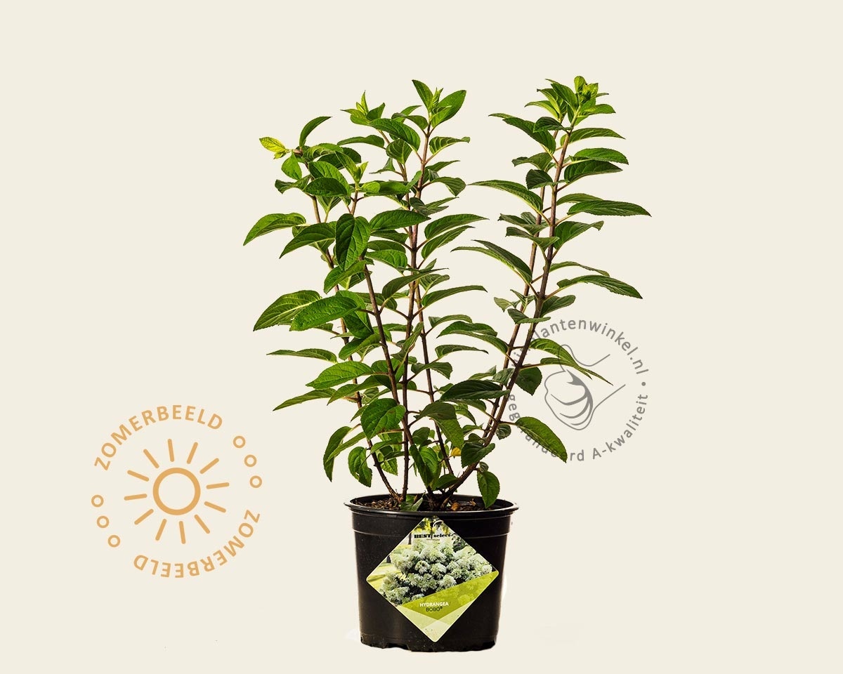 Hydrangea paniculata 'Bobo' is een compact groeiende pluimhortensia met volle bloempluimen. De soort lijkt enigszins op de Little Lime. Het verschil zit hem in de bloemen die iets groter zijn en witter kleuren wanneer deze vol in bloei staan. Na de hoofdbloei kleuren de bloemtuilen lichtroze, voordat ze in de herfst bruin kleuren. Al met al is dit een zeer aanbevelenswaardige tuinplant met sterke stelen en een lange bloei. De bloemen van de Hydrangea paniculata 'Bobo' zijn perfect te drogen, maar geven ook in de winter een prachtig effect bij aanvriezende mist of sneeuw.
