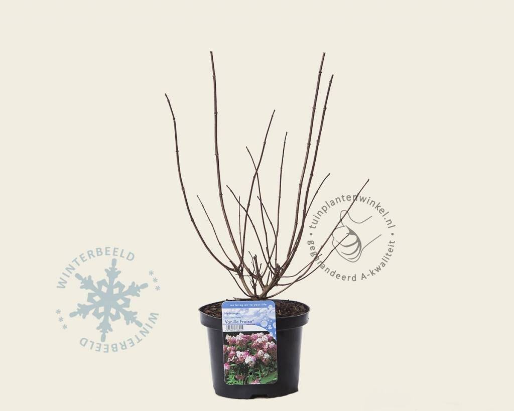 De Nederlandse naam voor Hydrangea is inderdaad Hortensia. Hydrangea paniculata 'Vanille Fraise' is een Pluimhortensia. De Pluimhortensia kunt u goed in de volle zon aanplanten, terwijl de boerenhortensia graag in de halfschaduw staat. De Hydrangea paniculata 'Vanille Fraise' pluimhortensia is goed winterhard.