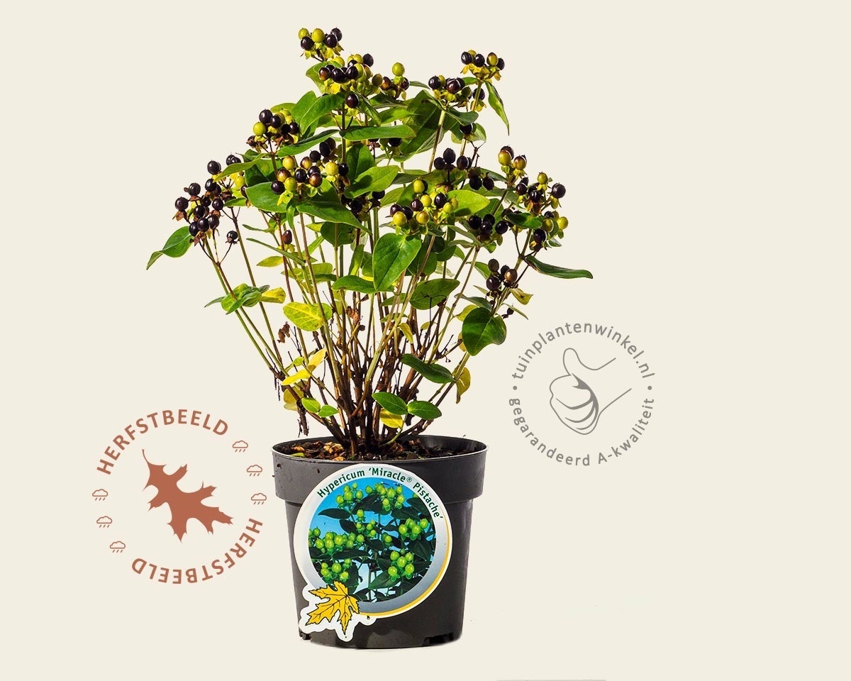 Hypericum 'Miracle Pistache' groeit in alle grondsoorten en staat graag in de zon of halfschaduw in een vochthoudende bodem. Gebruik tijdens het aanplanten aanplantgrond, dit mag meteen aan de wortels in het plantgat gedaan worden.