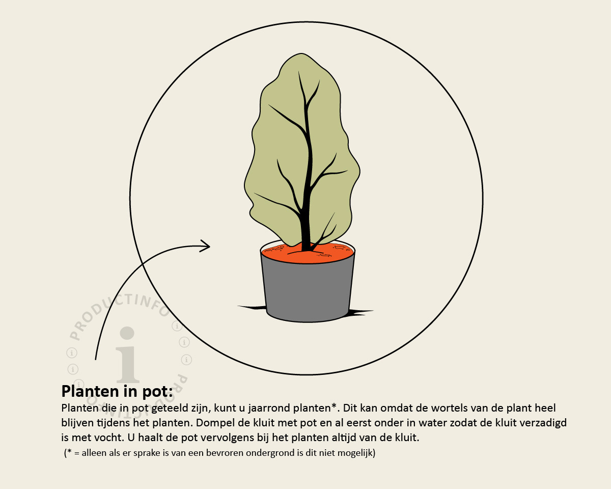 Japanse hulst groeit zowel in de zon als in de schaduw en staat het liefst in een normaal vochtige, goed doorlatende, lichtzure bodem. Bij het aanplanten kunt u het beste tuinturf of aanplantgrond aan de plantgaten toevoegen voor een optimale voedingsbodem. Dompel de kluit met pot en al even onder in een emmer met water voordat u de kluit in de bodem plaatst. Haal voor het plant de pot (container) van de plant.
