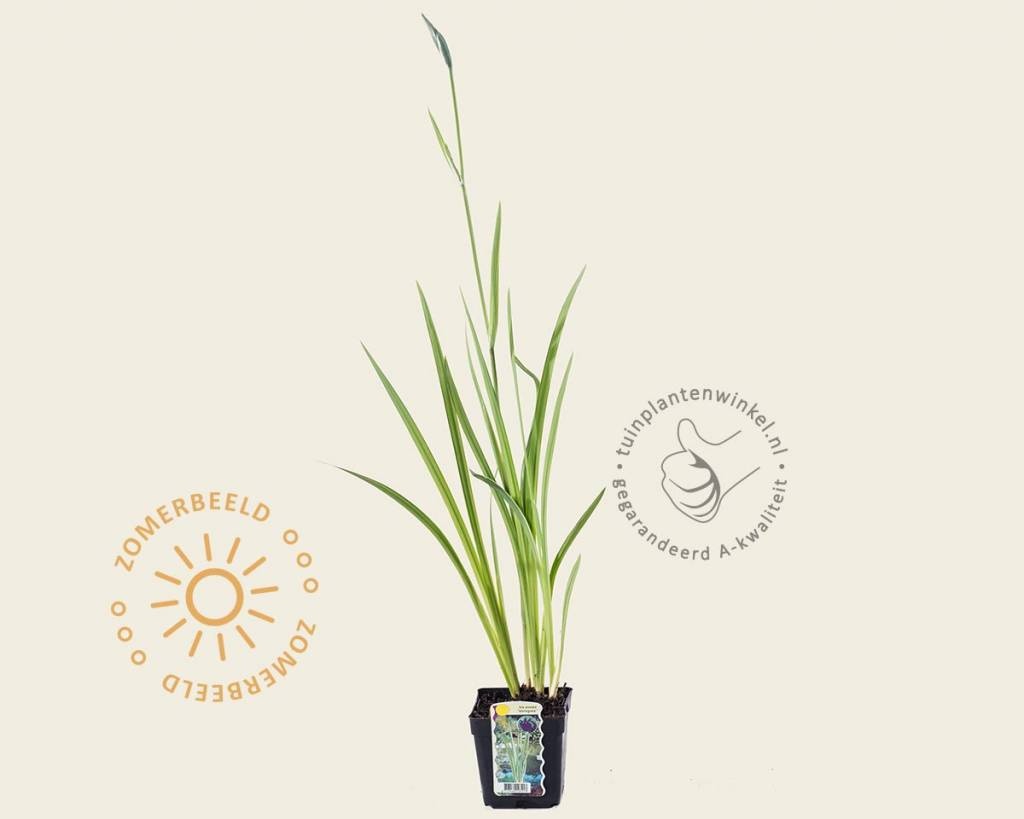 De grote, paarse bloemen van Iris ensata 'Variegata' verschijnen in de maanden eind mei - juli. De Japanse iris is goed te combineren met andere tuinplanten zoals Hemerocallis en andere lissen in de border. De bloemen zijn dieppaars en contrasteren zeer mooi met het bontgekleurde, grijsgroene blad. De tuinplant is vorstbestendig maar bladverliezend.