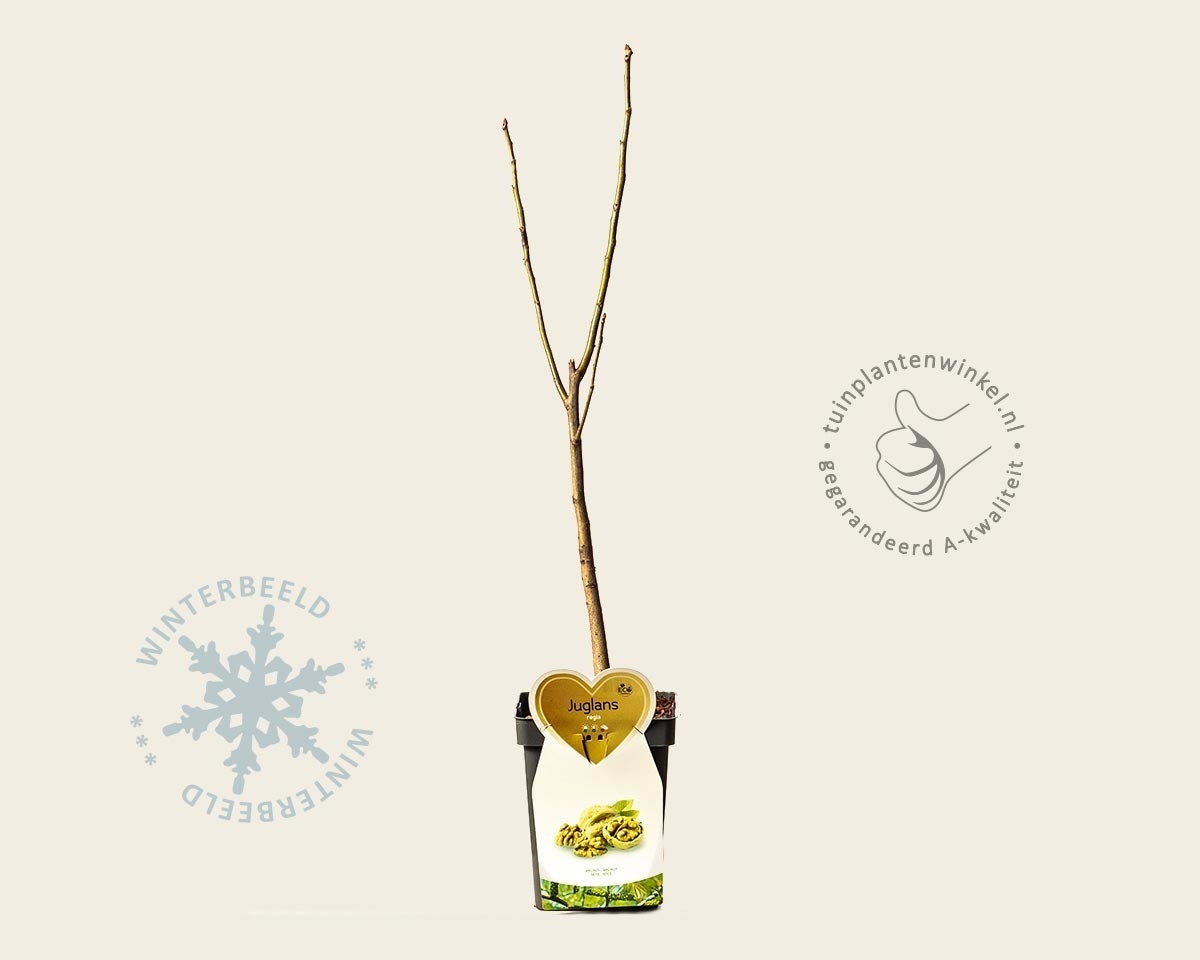 Deze mini Walnotenboom is een kleine uitzondering op het assortiment mini fruitbomen. Ook al verkopen wij deze boom als zijnde een miniboom; dat heeft in dit geval alleen betrekking op het beginformaat. Dit is een jonge, kleinste walnotenboom, zelfbestuivend, die behoort tot de geënte bomen, maar nog alle kanten op kan gaan en de tijd heeft om de boom uit te laten groeien tot een boom met een flink formaat, maar geschikt is voor kleine tuinen. Het zal dan ook nog even duren voordat u noten kunt plukken van de Walnoot dwergboom.