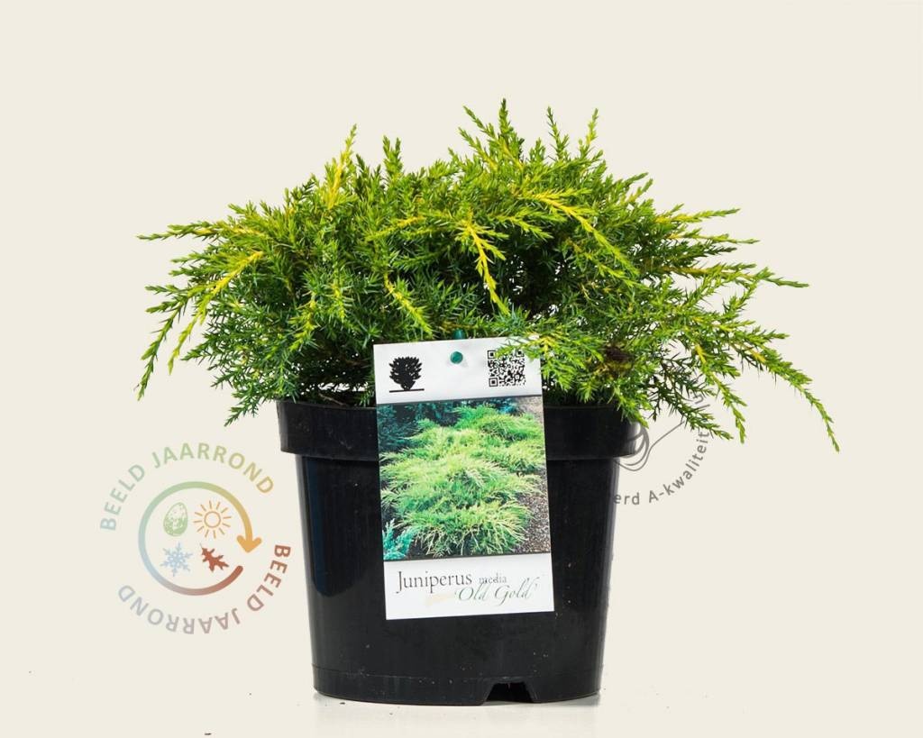 Juniperus media 'Old Gold' is een dwergconifeer. De takken waaieren flink in de breedte uit, dat geeft een mooi effect als ze wat overhangen aan de rand van een rotspartij of grote plantenbak. In de border van de tuin of in openbaar groen (bv. op de rotonde) is de Jeneverbes als solitair heel decoratief. Wanneer een wat hogere vakbeplanting gewenst is, kan de tuinplant ook prima dienst doen. Het geschubde blad loopt eerst felgeel uit, verkleurt daarna naar geelgroen en later goudgeel. Werkelijk het hele jaar zeer decoratief.