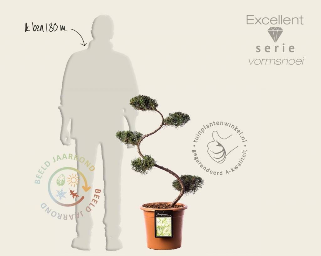 Juniperus virginiana 'Grey Owl' - bonsai is een decoratieve kweekvorm, die door een bepaalde techniek de bonsai-vorm heeft gekregen. Genetisch gezien is de tuinplant identiek aan de natuurlijke plant. De hoogte van de Jeneverbes - bonsai is 80-90 cm en is daarom heel geschikt voor de kleine ruimte. Over het algemeen wordt de bonsai in een sierpot geplant, maar in de volle grond is zeker ook mogelijk. De tuinplant is groenblijvend. Het geschubde blad is naaldvormig en blauwgrijs van kleur.