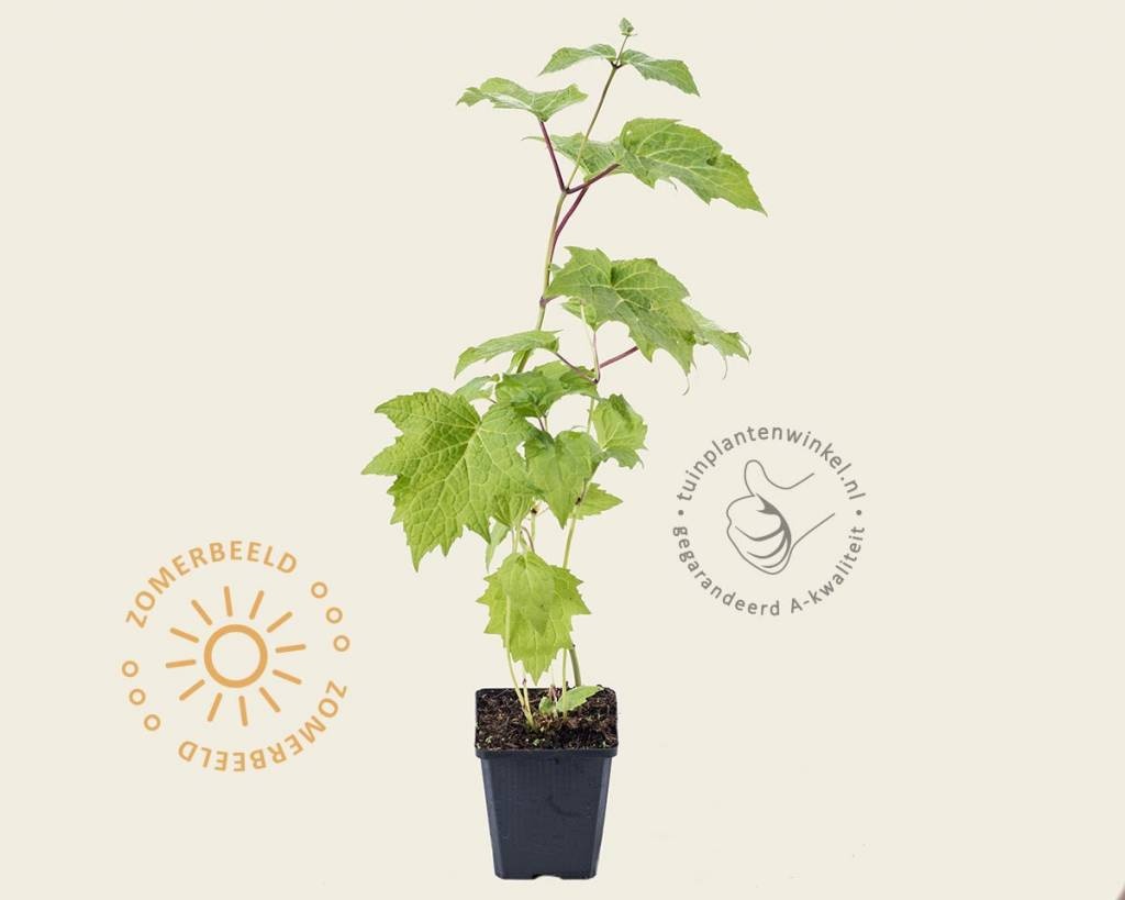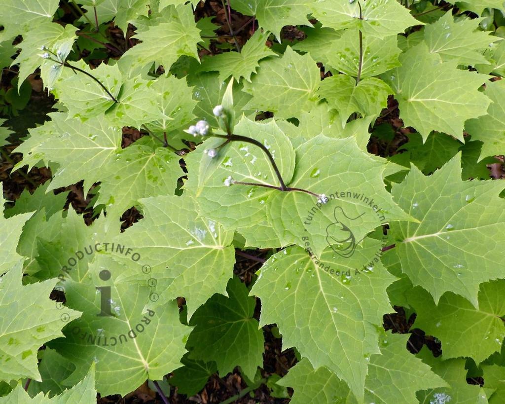 Antwoord: De Kirengeshoma palmata wordt ook wel in het Nederlands Japanse wasbloem genoemd. De zachtgele bloemen van de Kirengeshoma palmata, Japanse wasbloem verschijnen in de zomer maanden, dit zal in augustus - september zijn. De stengels zijn donker van kleur waar de bloemen op verschijnen. De plant kan het beste in de halfschaduw gezet worden zodat het blad niet verbrand door de zon.