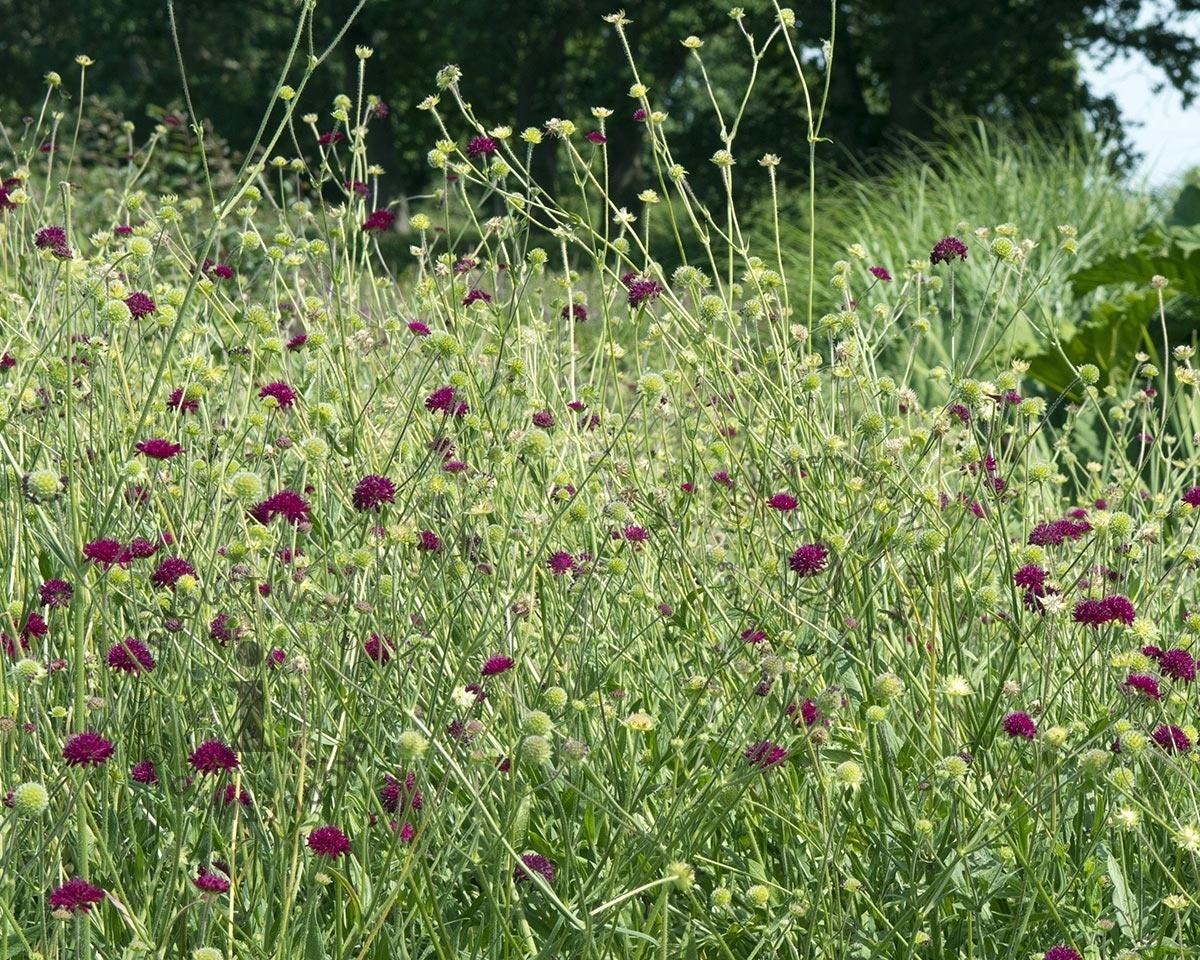 Kan men de Knautia macedonica beemdkroon combineren met andere vaste planten?