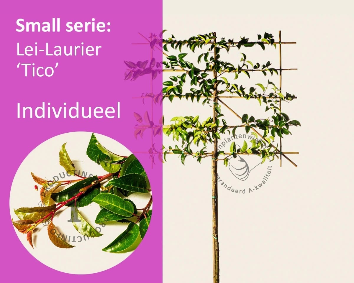 Lei-Laurier lusitanica 'Tico' is een variëteit van de Portugese laurier, deze is goed winterhard. Vandaar dat we deze soort gekozen hebben om te gebruiken als leiboom in onze Small-serie. jonge scheuten krijgen bij het uitlopen mooie bronskleurige bladeren, die in de zomer heldergroen worden. Met de Lei-Laurier creëert u een groenblijvend scherm in de tuin voor extra privacy of ter camouflage van een muur of bijvoorbeeld schutting.