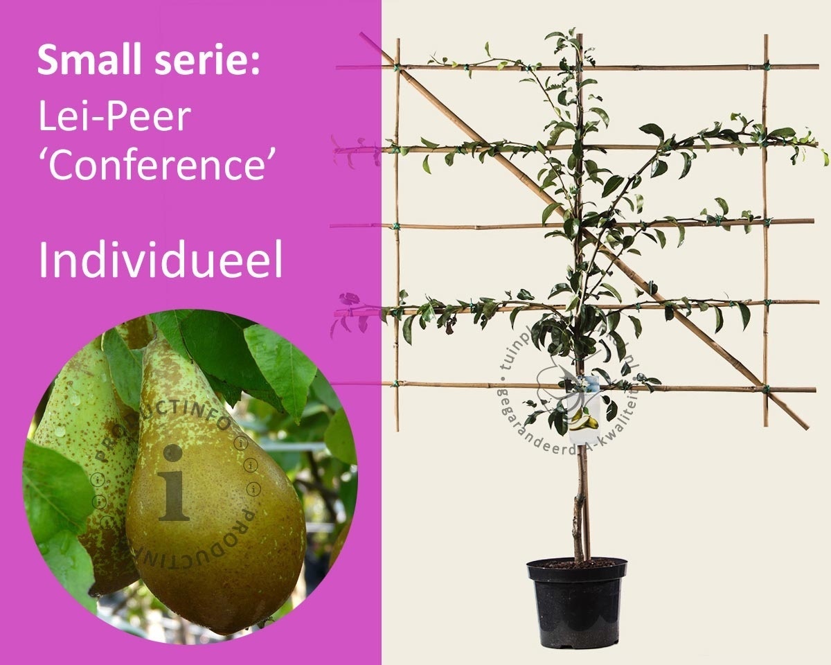 Pluk de lekkerste vruchten uit eigen tuin met deze leipeer. De 'Conference' is een zoete en gemakkelijk dragende perensoort. De vruchten rijpen in de loop van augustus of september. In het voorjaar geeft de boom witte bloesems. Omdat het nog een jonge boom betreft kan het een aantal jaren duren voordat de eerste bloesems en peren aan de boom groeien.