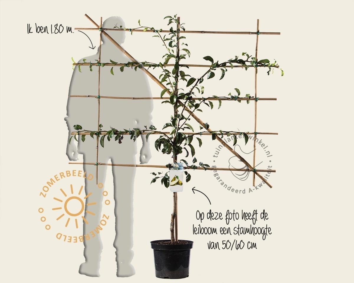 Deze leipeer staat het liefst op een warme, zonnige plek in de tuin. Omdat de boom in een plat rek is aangebonden kunt u deze makkelijk voor een schutting, muur of gevel plaatsen. De wortels zullen niet zorgen voor extreme druk op eventuele leidingen of funderingen.