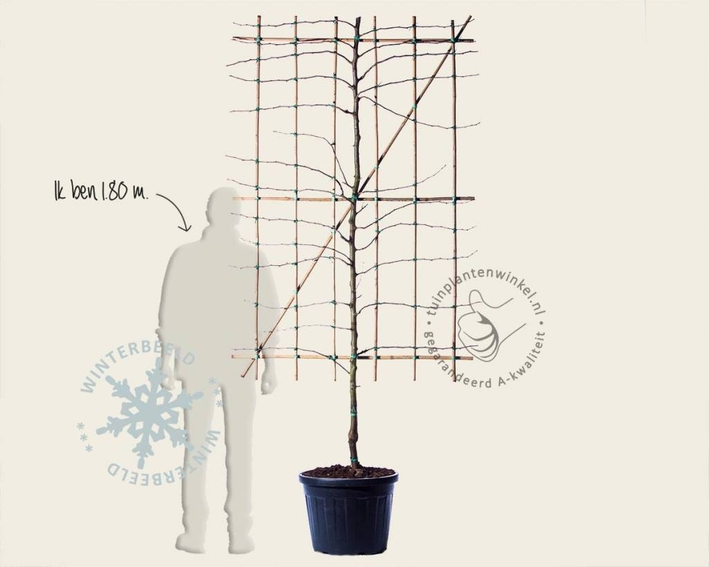 Met deze boom plukt u uw eigen Doyenne du Comice peren. De Lei-peer is ideaal om tegen een muur of schutting te plaatsen maar kan ook als een haagelement worden ingezet. Omdat de boom smal blijft, neemt hij bijna geen ruimte in.