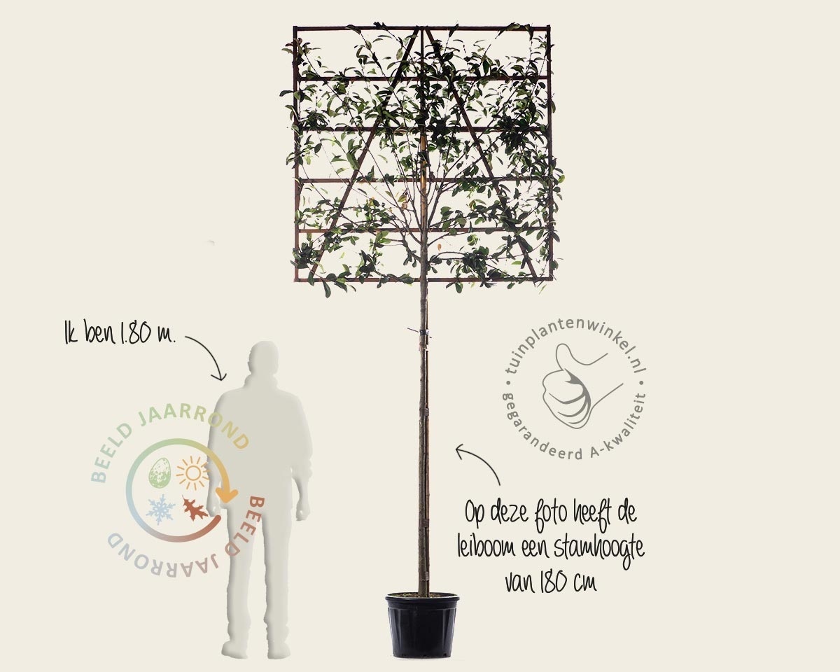 Ons advies is om de rekken van de Lei-Photinia - 150 maximaal 60 centimeter uit elkaar te plaatsen. Door de rekken van de leibomen aan elkaar te koppelen ontstaat een sterk geheel en kunt u de takken van de leibomen naar elkaar toe laten groeien. Een alternatief voor de Lei Photinia is de Lei Laurier. Deze kent geen rode scheuten maar geeft het hele jaar een groene aanblik. De groeisnelheid van een Lei-Glansmispel is ongeveer gelijk aan die van de Laurier.