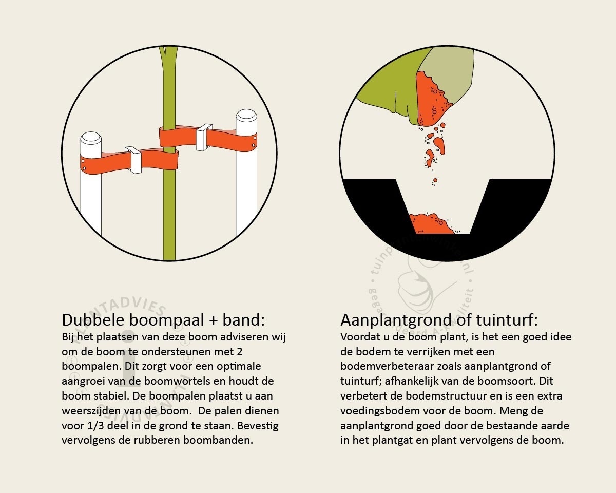 Bomen van tuinplantenwinkel.nl kunt u jaarrond planten. Dit kan omdat we al onze bomen in pot leveren. Aanplanten in de herfst, winter, lente én zomer is dus altijd mogelijk, met aangroeigarantie!