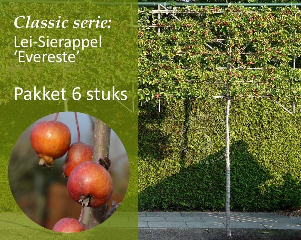 Lei-Malus 'Evereste' komt het best tot zijn recht als hij geplant wordt ter decoratie (bloesem / vruchtjes). Voor het bieden van totale privacy is hij minder geschikt, omdat de Lei-Sierappel altijd een beetje gefilterd open blijft. Lei-Sierappels worden om deze reden veel toegepast in de voortuin waar het bieden van privacy vaak minder van belang is. De Lei-Sierappel is een van de leibomen uit ons uitgebreide assortiment.