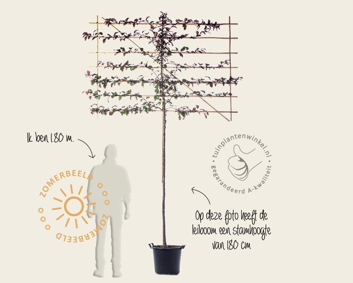 Lei-Malus 'Veitch's Scarlet' komt het best tot zijn recht als hij geplant wordt ter decoratie (bloesem / vruchtjes). Voor het bieden van totale privacy is hij minder geschikt, omdat de Lei-Sierappel altijd een beetje gefilterd open blijft. Lei-Sierappels worden om deze reden veel toegepast in de voortuin waar het bieden van privacy vaak minder van belang is. De Lei-Malus 'Veitch's Scarlet' is een van de leibomen uit ons uitgebreide assortiment.