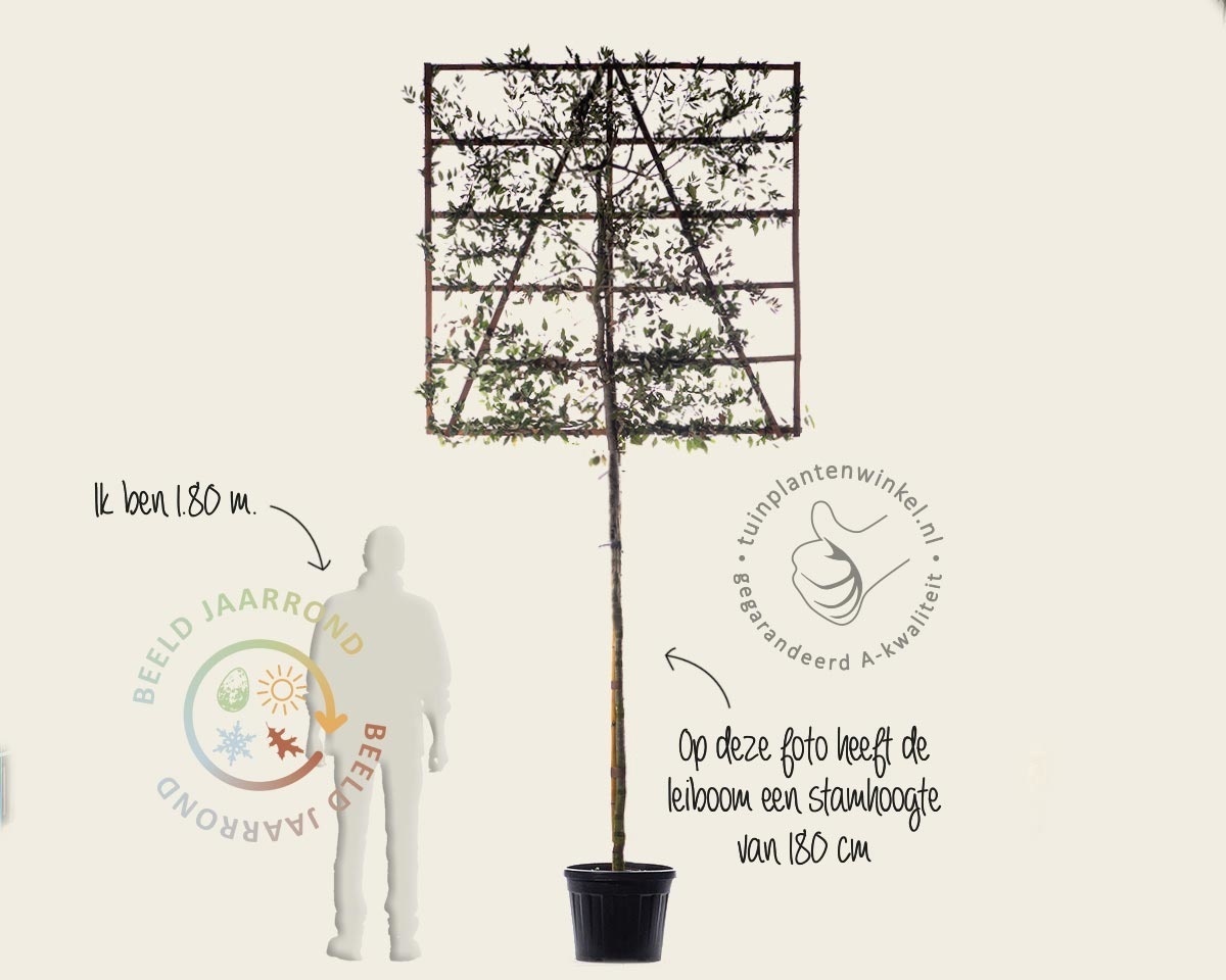 Ons advies is om de rekken van de Lei-Steeneik - 150 maximaal 60 centimeter uit elkaar te plaatsen. Door de rekken van de leibomen aan elkaar te koppelen ontstaat een sterk geheel en kunt u de takken van de leibomen naar elkaar toe laten groeien. Een alternatief voor de Leisteeneik is de Lei Olijfwilg. De Lei-Olijfwilg heeft groter, grijsgroen blad. De groeisnelheid van een Lei-Olijfwilg is iets sneller dan die van de Lei-Steeneik.