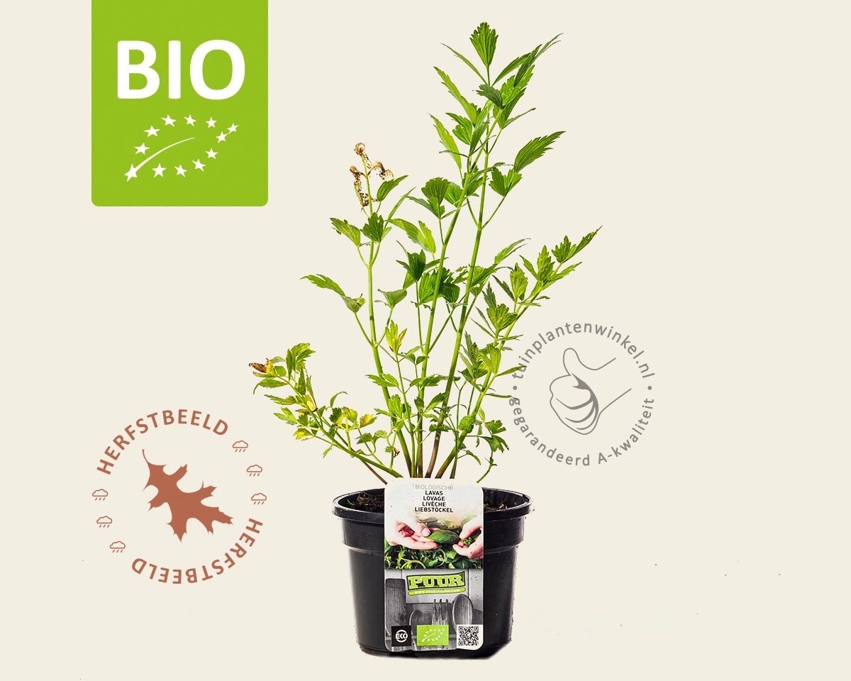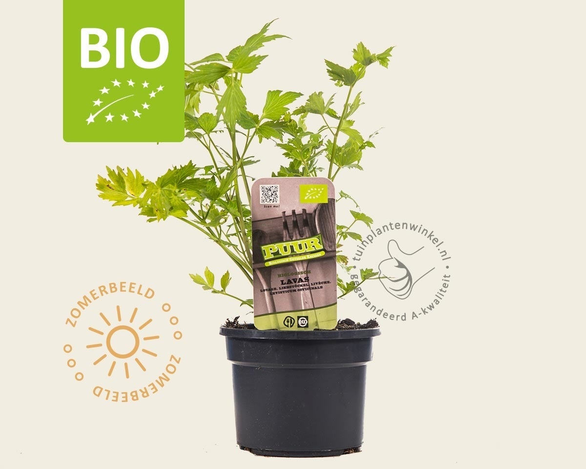 Levisticum officinale Puur is een bladverliezende kruidenplant. Deze Maggieplant bloeit van juni t/m augustus met geel-groene bloemen, wordt uiteindelijk ongeveer 75 cm hoog en staat bij voorkeur in de zon - halfschaduw.