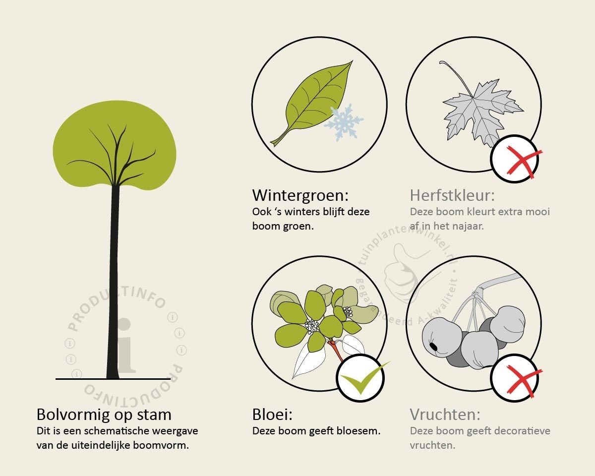 Deze groenblijvende boom staat graag op een zonnige tot halfzonnige standplaats. Gebruik bij het planten wat aanplantgrond voor een goede start. De bodem dient niet te nat te zijn.