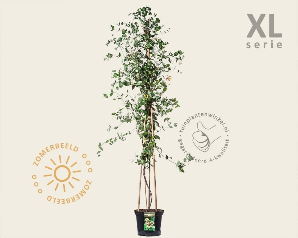 Lonicera periclymenum 'Belgica' - XL is een klimplant met rood-witte bloemen, die vooral in de avond heerlijk geuren! De bladeren zijn donkergroen. De Kamperfoelie is geschikt tegen een muur met een leirek of voor over een pergola. U moet de tuinplant wel vastbinden met bindbuis (flexibel draad). De Kamperfoelie wordt toegepast in stedelijk openbaar groen en in bostuinen. Kamperfoelie groeit van oorsprong graag in bosranden waar de tuinplant vanuit de koelte naar een lichte, warme plek klimt.
