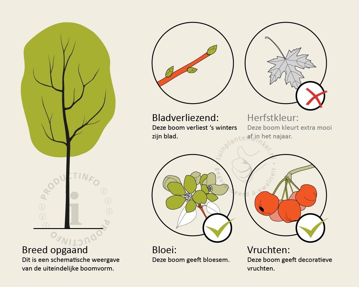 Bomen van tuinplantenwinkel.nl kunt u jaarrond planten. Dit kan omdat we al onze bomen in pot leveren. Aanplanten in de herfst, winter, lente én zomer is dus altijd mogelijk, met aangroeigarantie!