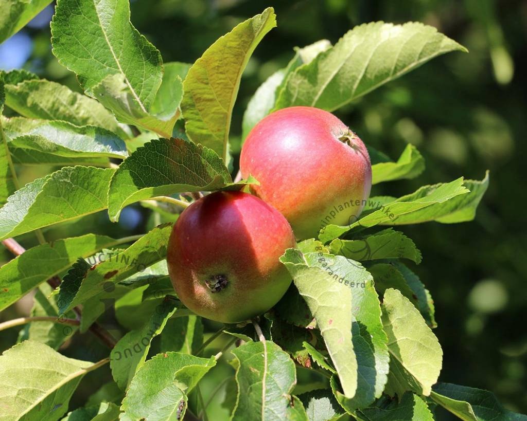 Malus domestica 'Discovery' - mini is een van de vroegst rijpende appels. Soms wordt deze Handappel ook wel het rode oogstappeltje genoemd (Het echte oogstappeltje heeft geel/groene vruchten en heet Malus domestica 'Transparante Jaune'). Het is een vroegbloeiende tuinplant, die eind augustus een lekkere, platronde hand- of moesappel levert met een goede smaak. Deze mini handappel word ook wel patiofruitboom genoemd.