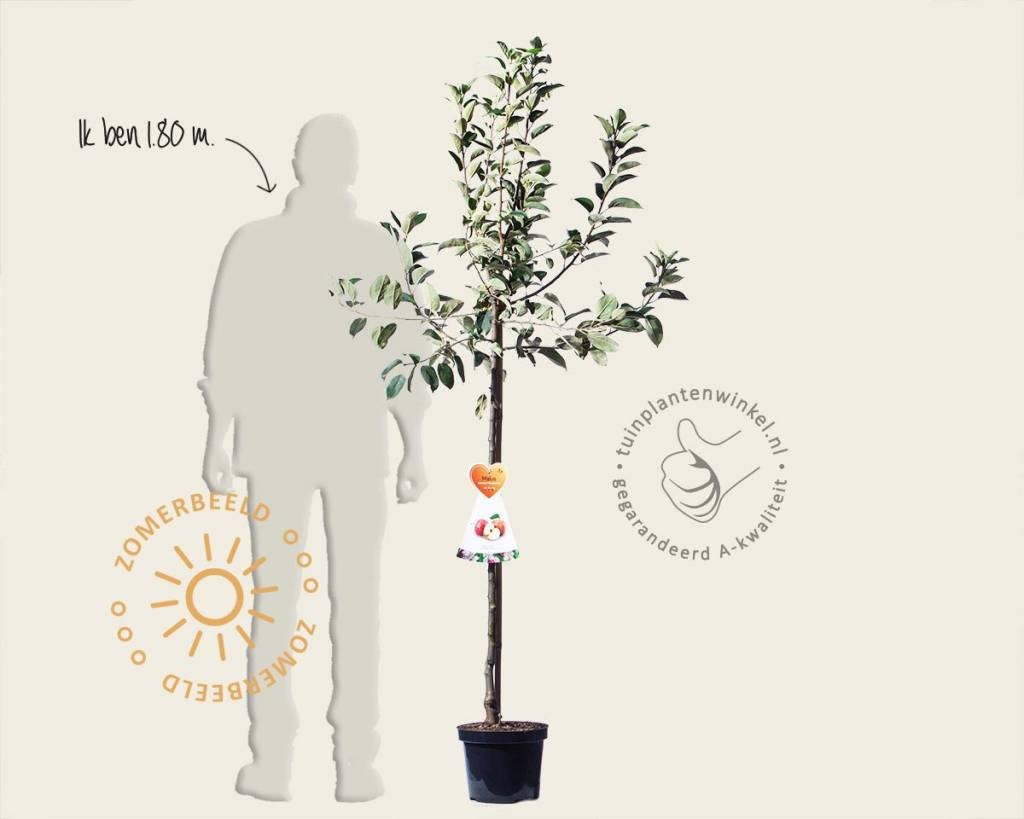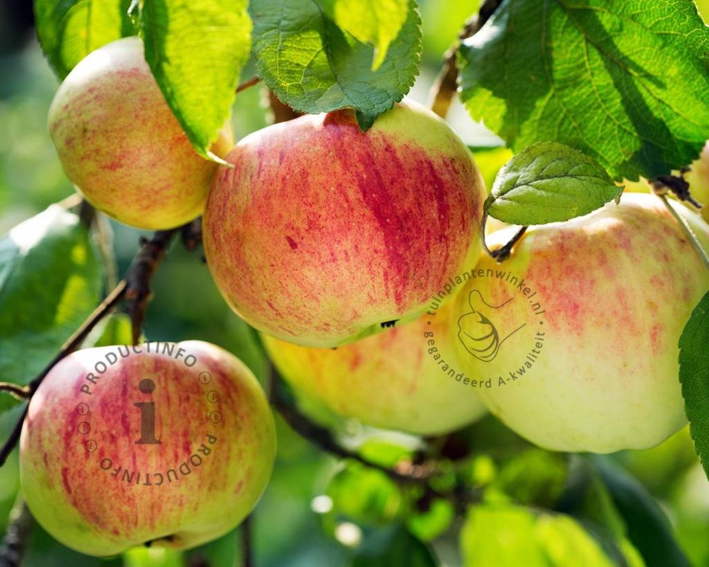 Malus domestica 'Gravenstein' - halfstam is makkelijk te snoeien. Het voordeel van een halfstamfruitboom is dat de grond onder de stam voor onderhoud gemakkelijk te bereiken is. De beste fruitopbrengst verkrijgt u door veelvuldig te snoeien, zodat de boom licht en luchtig blijft, met een beperkt aantal hoofdtakken. De hoogte van de tuinplant bepaalt u hierbij zelf. Vanuit de hoofdtakken zullen elk jaar nieuwe takjes omhoog groeien. Knip deze takjes op 10 cm van de hoofdtak terug. De korte takjes van 10 cm die overblijven worden dikker. Hieraan vormen zich in de loop van de jaren de bloemen die kunnen uitgroeien tot vruchten. Het snoeien van een appelboom dient in wintermaanden te gebeuren, bij vorstvrij weer.