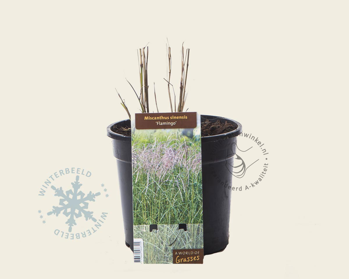Antwoord: Miscanthus is een hele grote familie die tot de grassen behoren. Alle Miscaanthus soorten zijn niet groenblijvend. Maar ze zijn wel goed winterhard. Plant de Miscanthus sinensis 'Flamingo' gerust tussen ander heesters die wel groenblijvend zijn. In de herfst zal dit een mooi contrast geven. De bloei van Prachtriet is in de maand augustus oktober met roze bloempluimen.