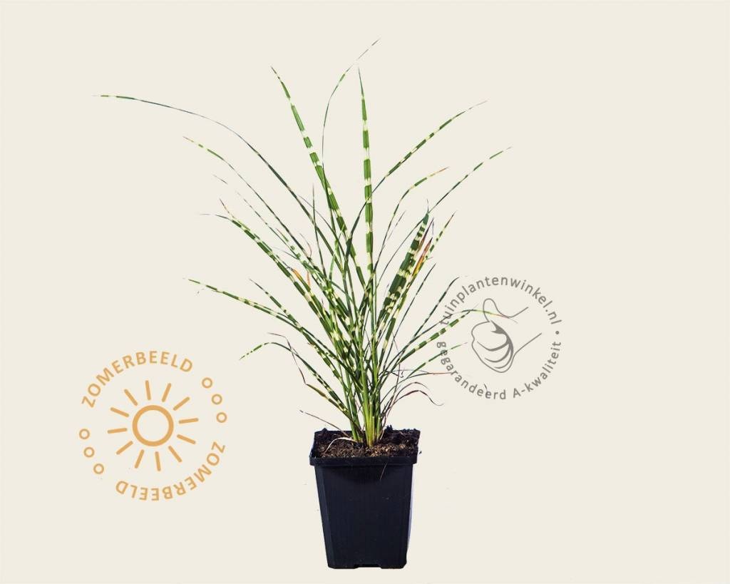 De Miscanthus sinensis 'Zebrinus' kan 175 cm als volwassen hoogte bereiken. Het mooiste is als u 3 planten per vierkante meter plaatst. Miscanthus wordt ook wel prachtriet genoemd. Geef prachtriet in de borders wel de ruimte om uit te groeien. In een border met siergrassen mag een Miscanthus soort eigenlijk niet ontbreken.