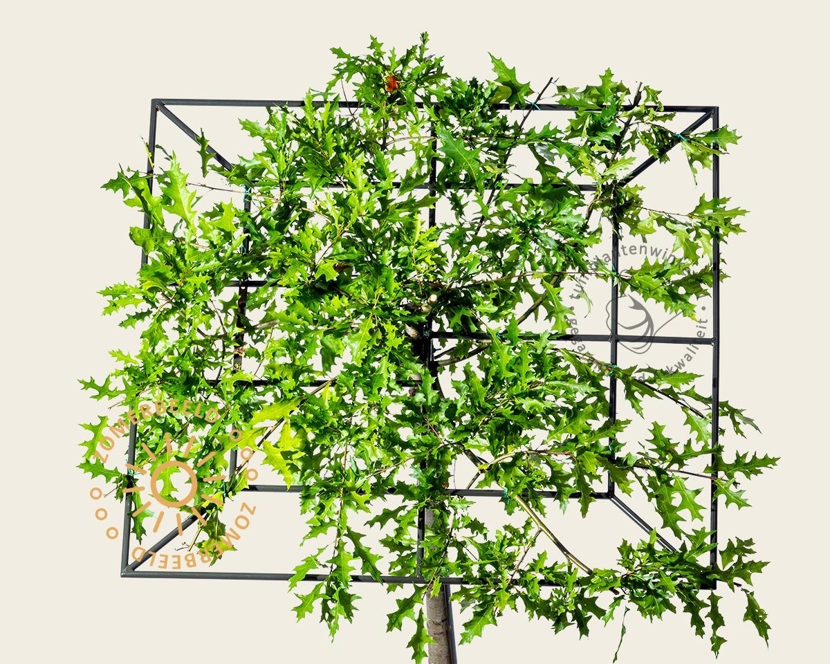 De Moeraseik quercus palustris laat zich goed in vorm snoeien. Dit kan het hele jaar door. Doorgaans wordt deze dakeik één tot tweemaal per jaar gesnoeid. De eerste snoei vindt plaats rond eind juni/begin juli. Snoei hierbij de boom weer in vorm door de scheuten met een heggenschaar of snoeischaar terug te knippen. In de herfst- of winter-maanden als het niet vriest kunt u de boom met zijn verdorde blad terug in zijn vorm scheren met een heggenschaar. Gebruik voor dikkere takken een snoeischaar. De snoei in de zomer is optioneel en kan achterwege worden gelaten. Het frame is te verlengen met extra bamboestokken indien nodig. U kunt de frames ook met elkaar koppelen met behulp van bamboestokken. De dak moeraseik quercus palustris dient minimaal eenmaal per jaar gesnoeid te worden om de vorm te behouden.
